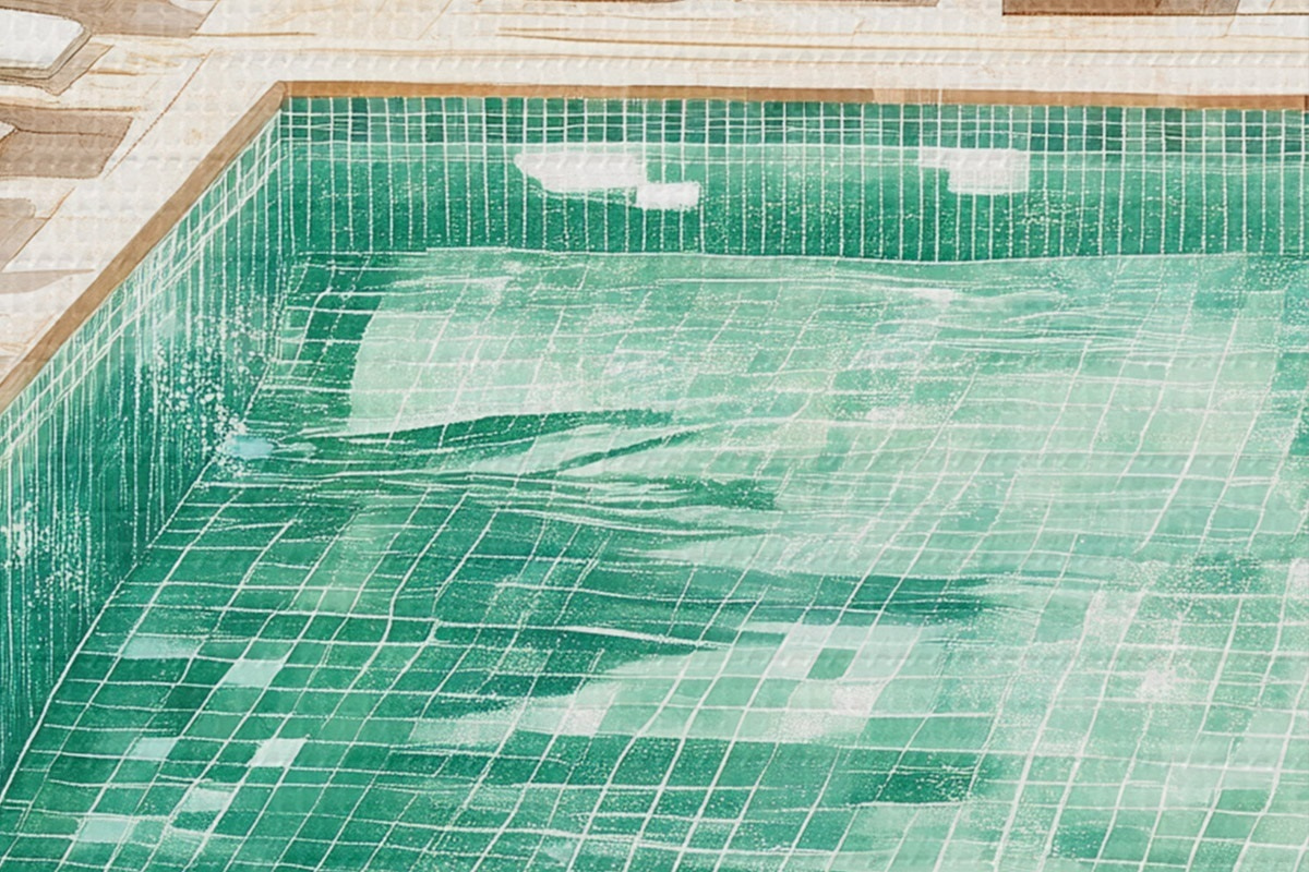 Foto Piscina de verano en el jardín verde, estilo vintage, acuarela Nr r43189