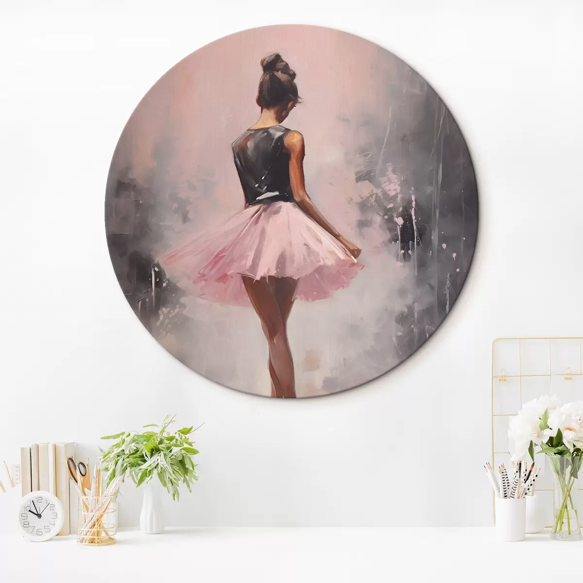 Cuadros redondos Una chica con falda rosa r43204