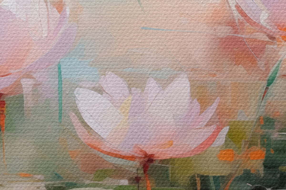 Hay tres tipos de material disponibles para pedidos: Lienzo Económico - material denso y duradero para impresión digital, idéntico al lienzo de pintor, superficie impermeable, reproducción realista de los detalles, material de grano medio. Lienzo Premium - la textura se asemeja a la de un lienzo de pintor (pequeños hilos entrelazados). Reproducción suave y detallada de la imagen sobre una superficie mate. Eco-Premium - tejido 100% algodón de alta calidad. Gracias a las fibras naturales de algodón, el material es duradero y resistente al desgaste. Excelente reproducción del color y el detalle.
