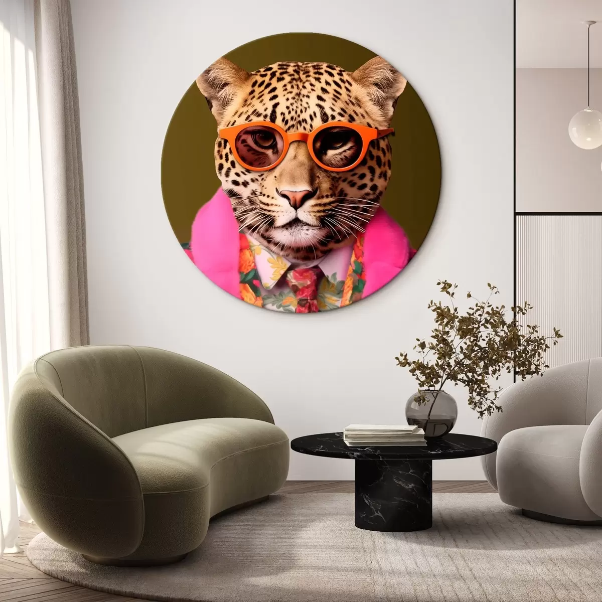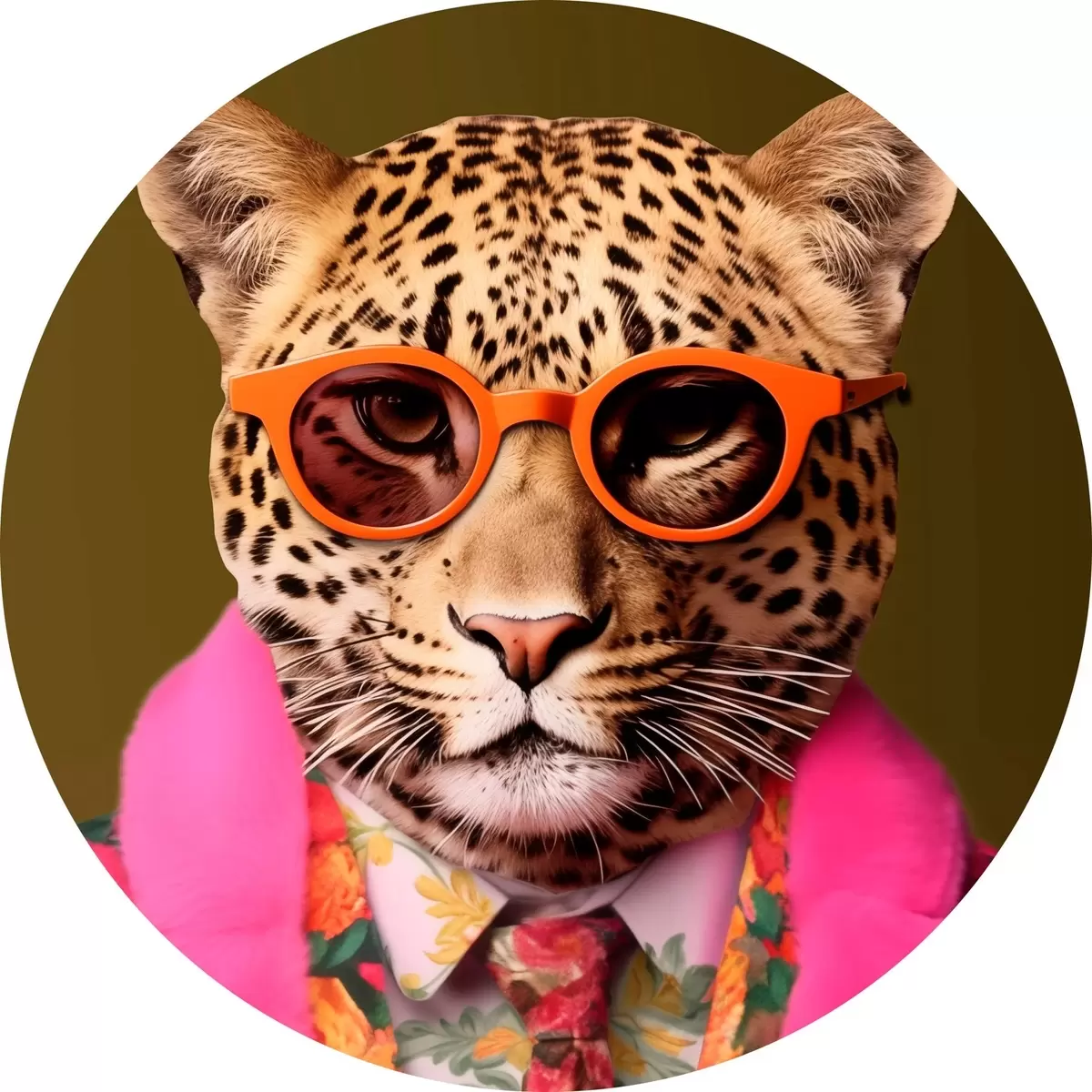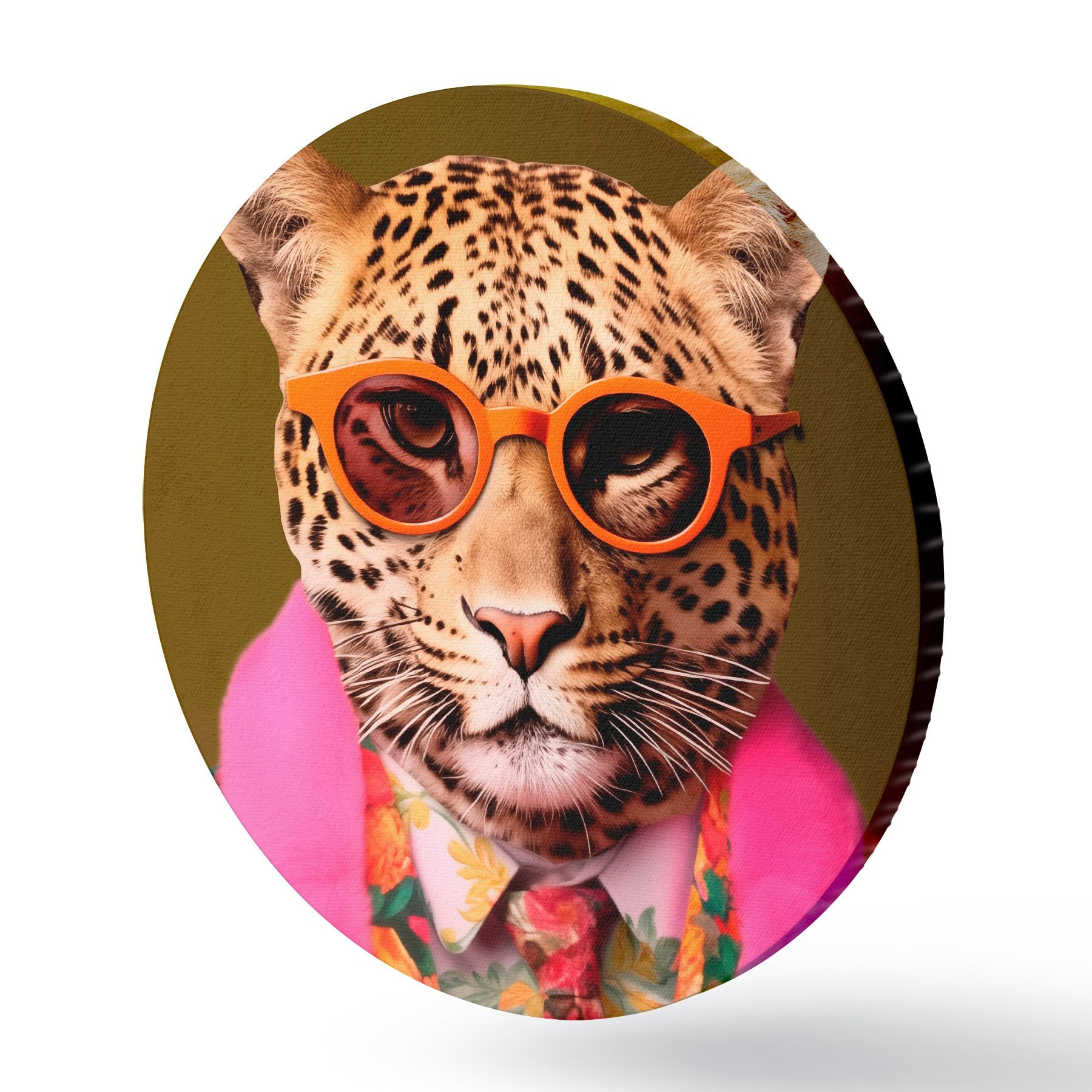 Cuadros redondos Elegante leopardo con traje de flores r43267