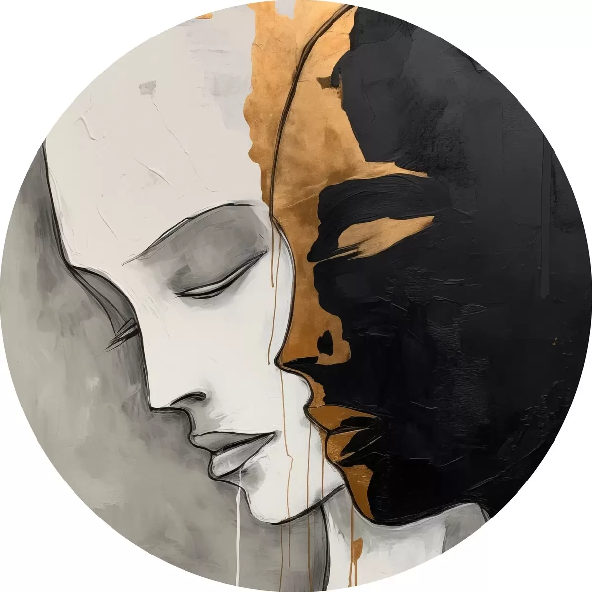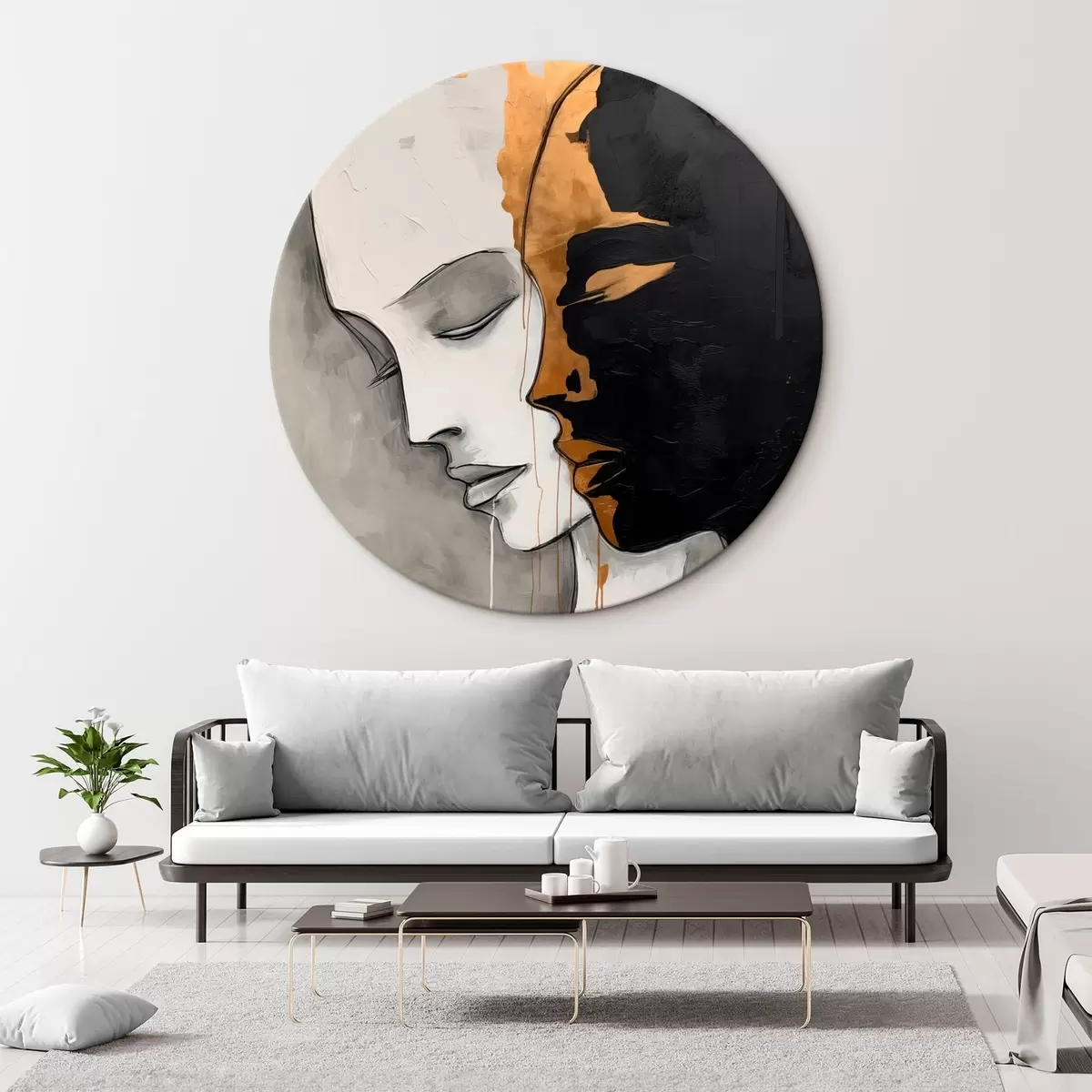 Cuadros redondos Siluetas contrastadas con toques abstractos r43280