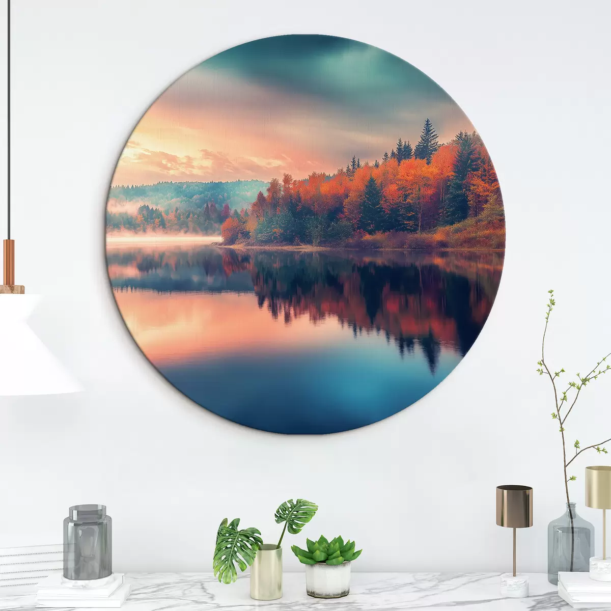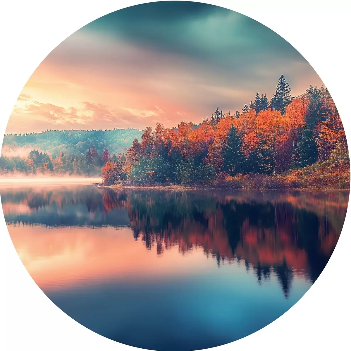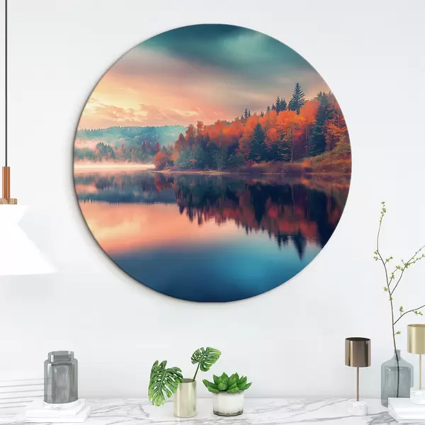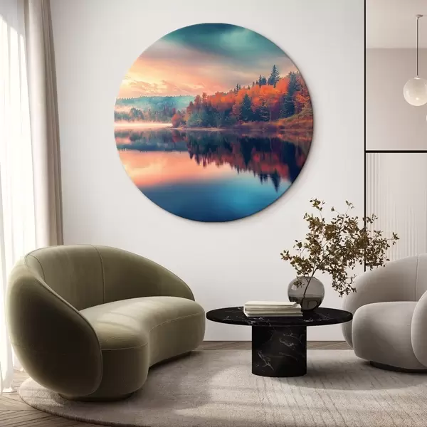 Cuadros redondos Amanecer en el lago en otoño r43290