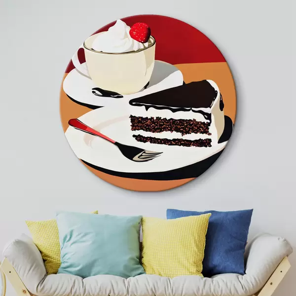 Cuadros redondos Una taza de café y un trozo de tarta r43293