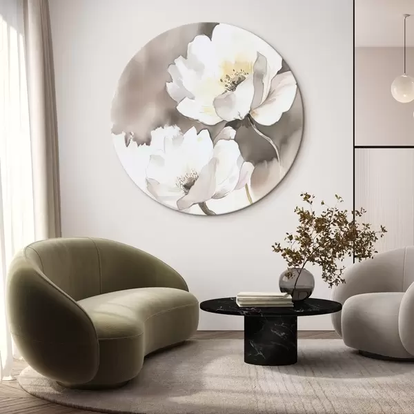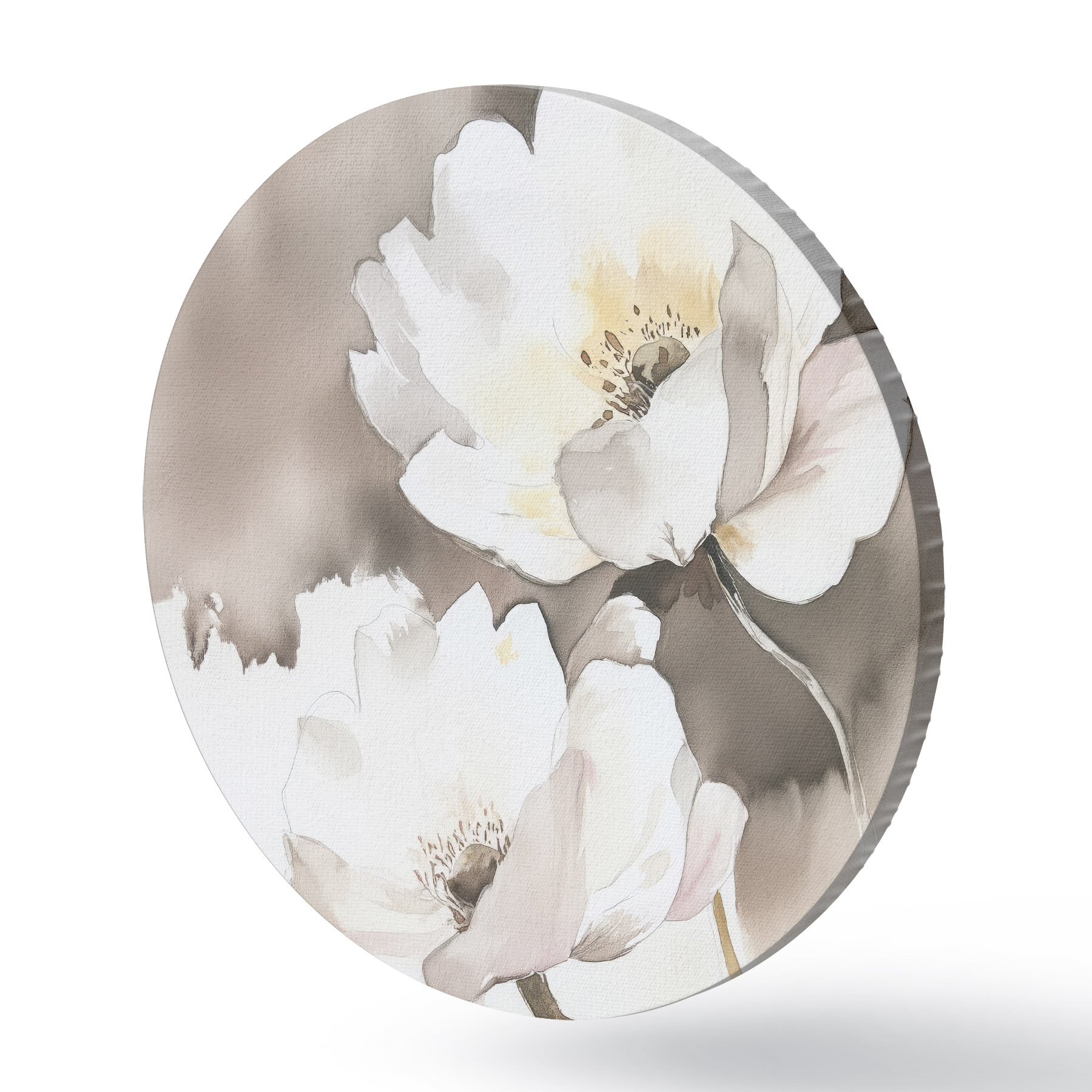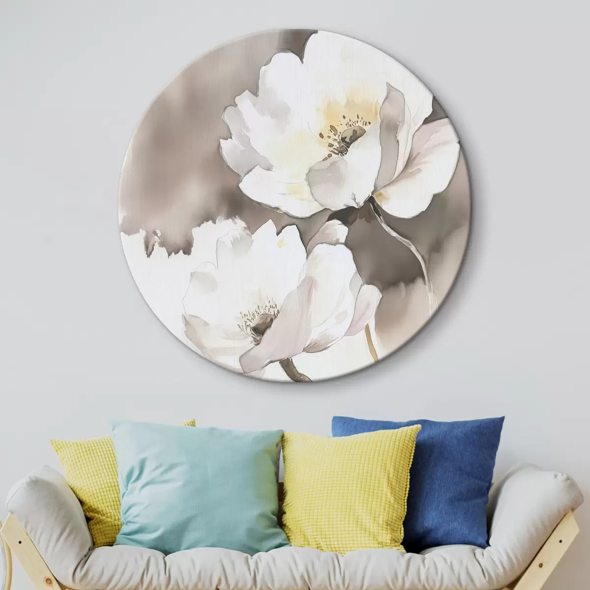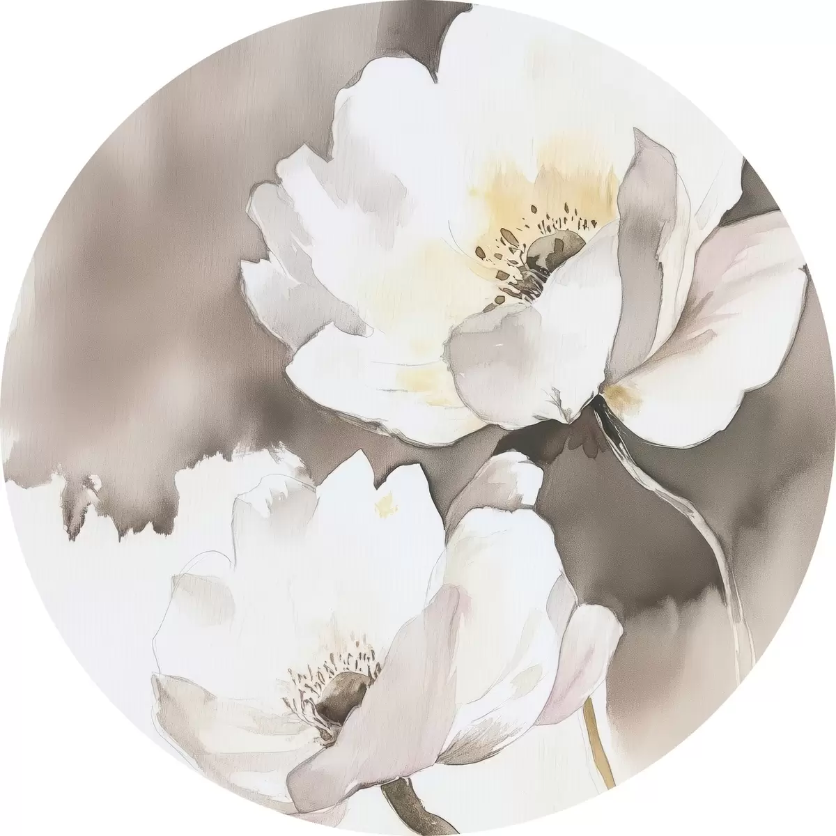 Cuadros redondos Flores blancas sobre fondo marrón al estilo de la acuarela r43297