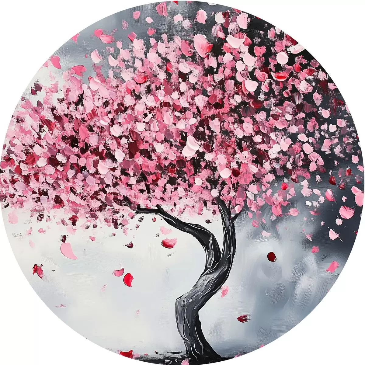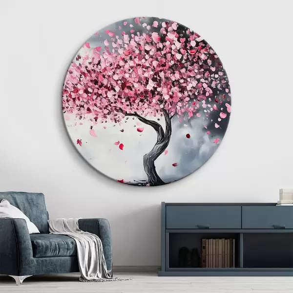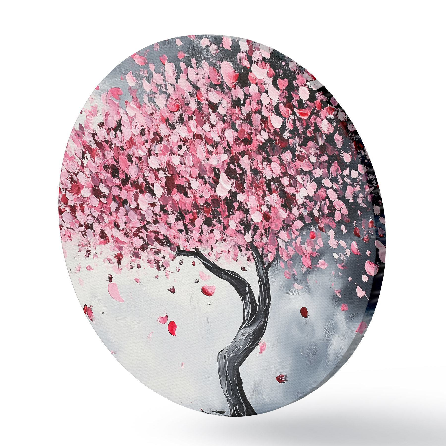 Cuadros redondos Árbol en flor rosa sobre fondo gris r43299
