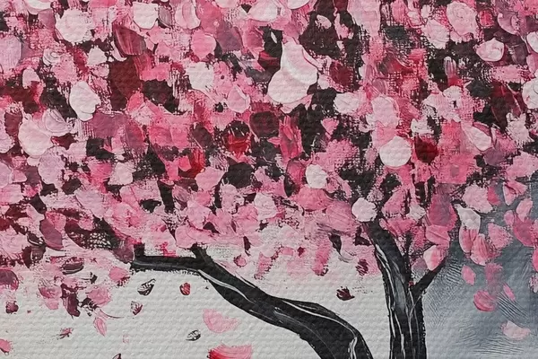Foto Árbol en flor rosa sobre fondo gris Nr r43299