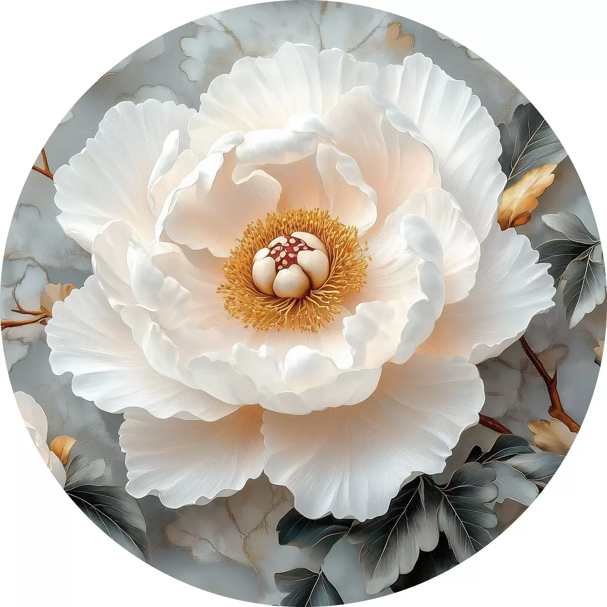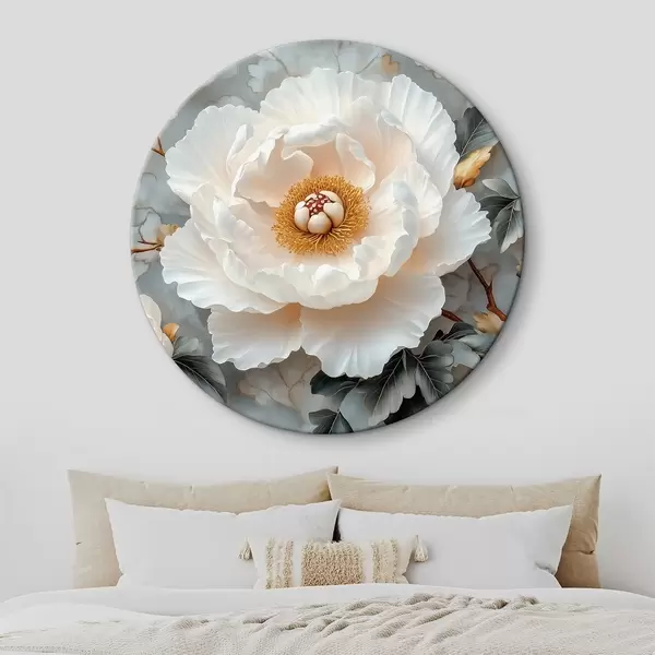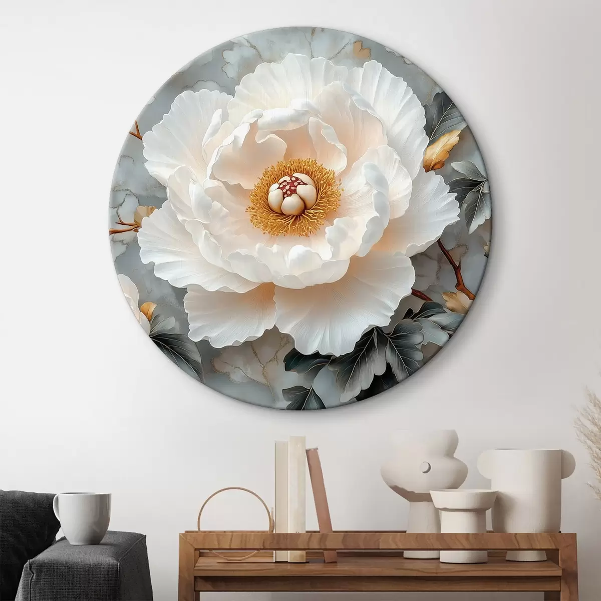 Cuadros redondos Preciosa peonía sobre un fondo de hojas y pequeñas peonías r43315