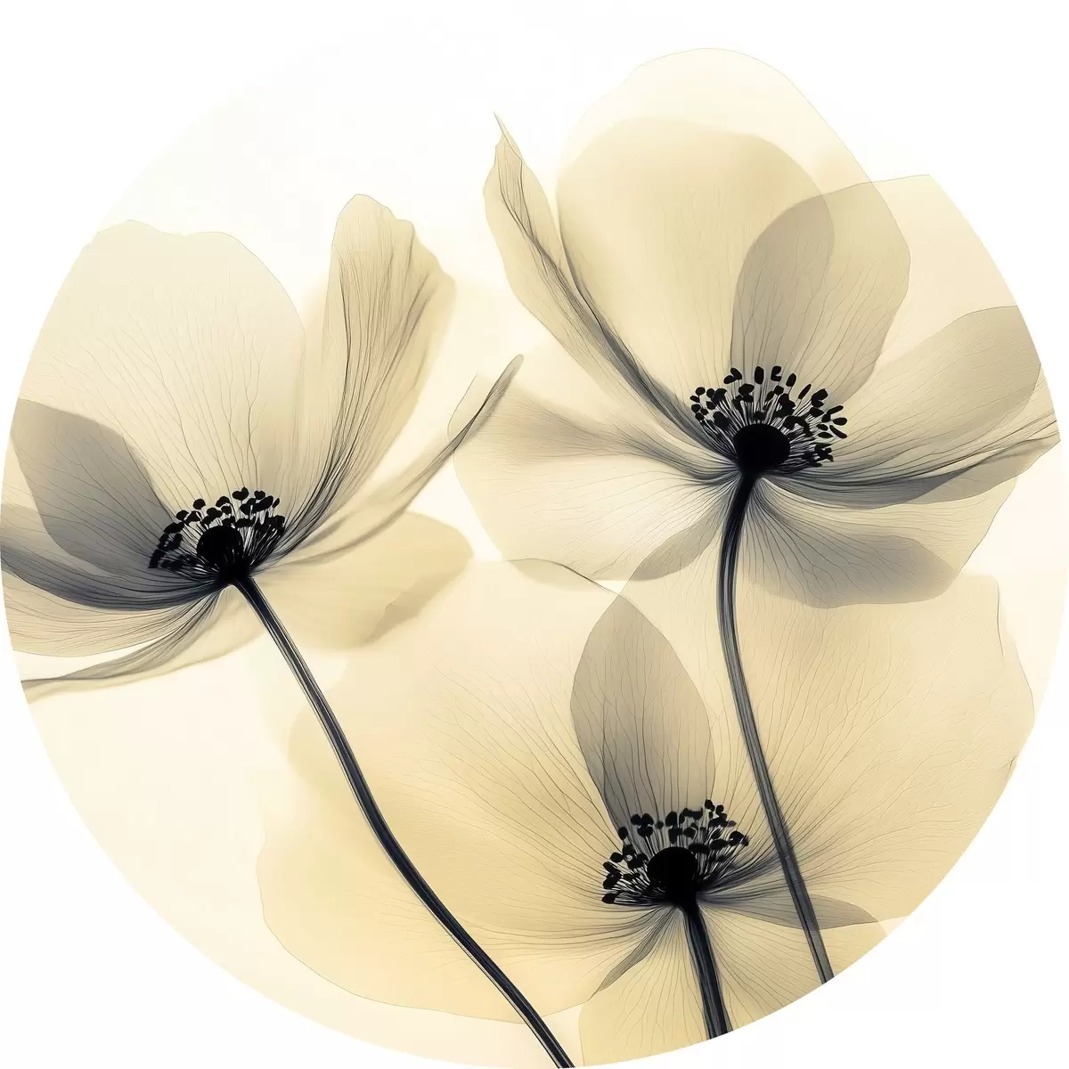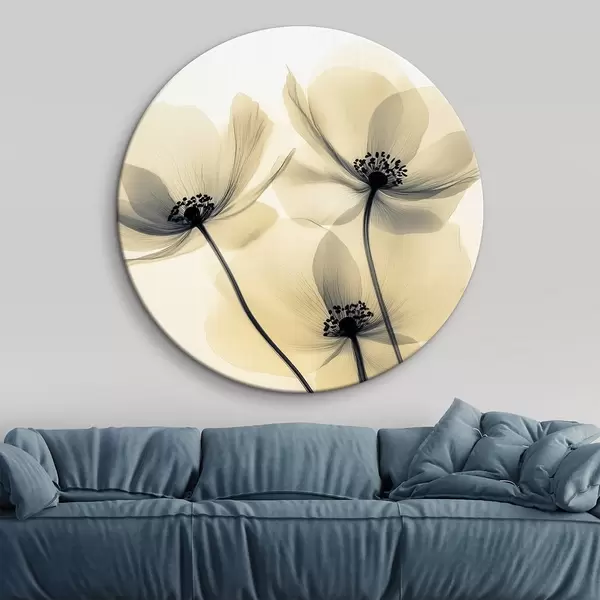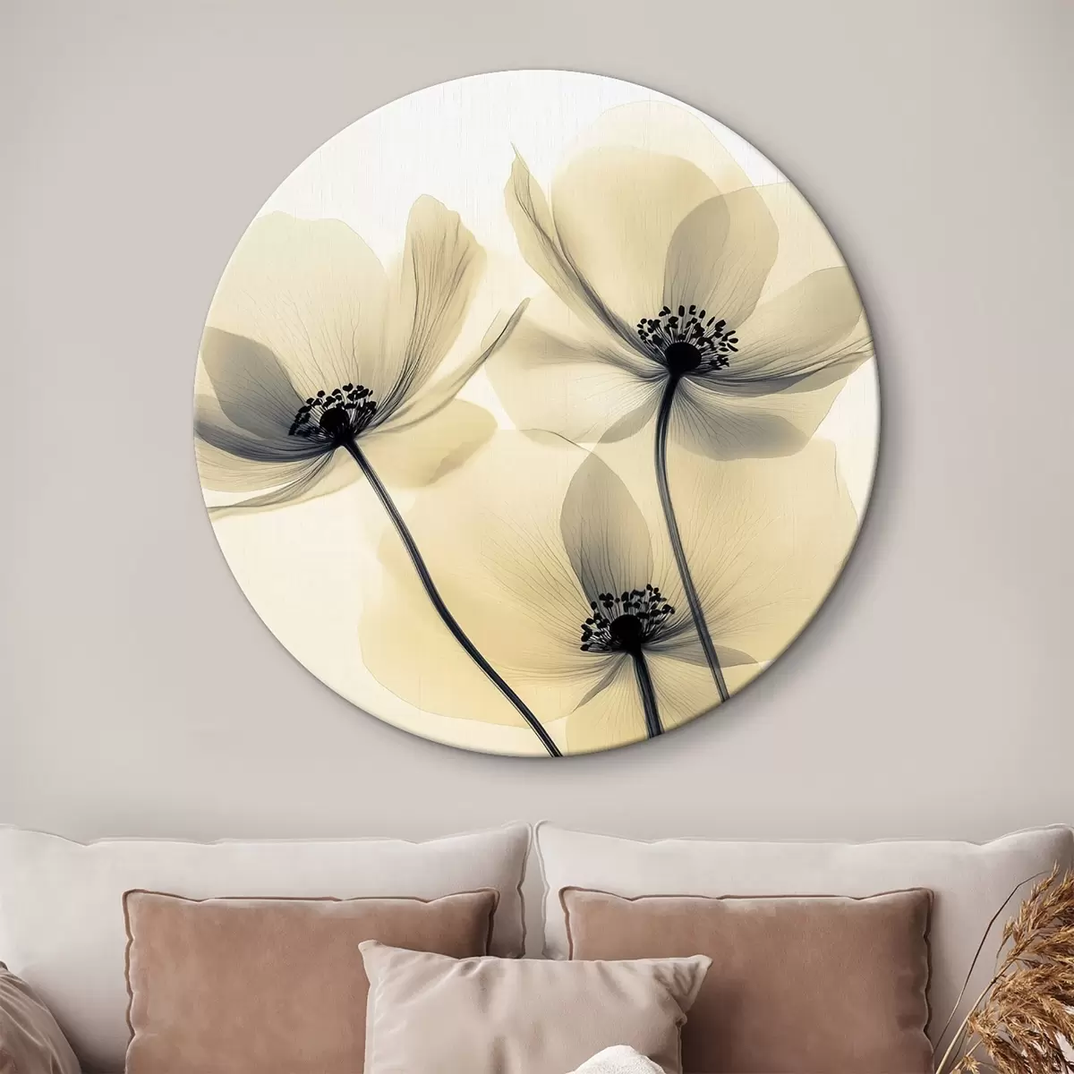 Cuadros redondos Flores delicadas: amapolas con pétalos translúcidos r43316
