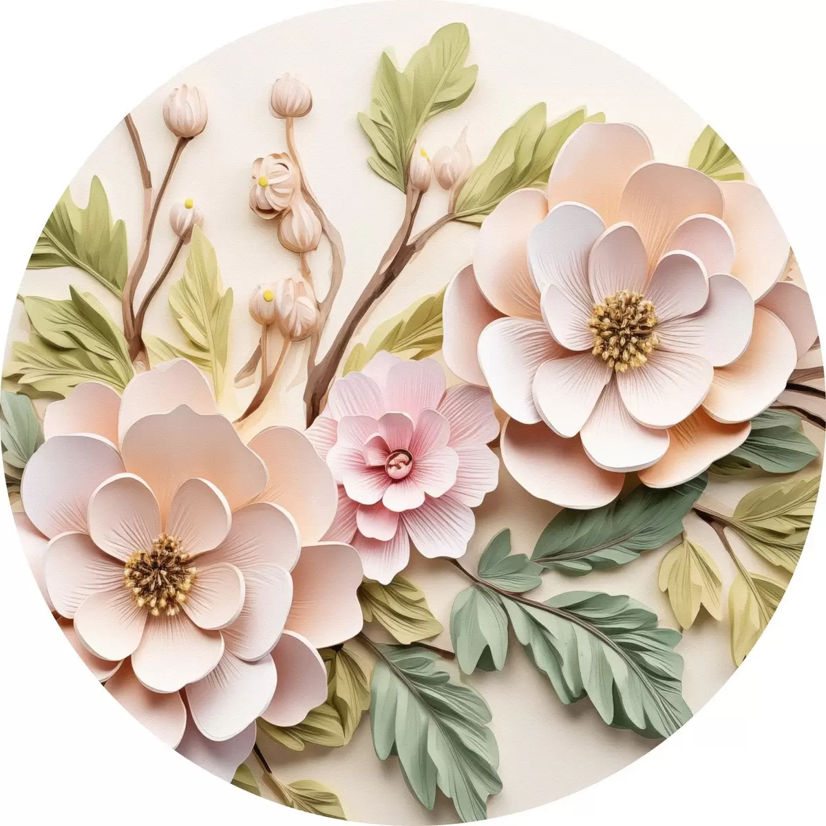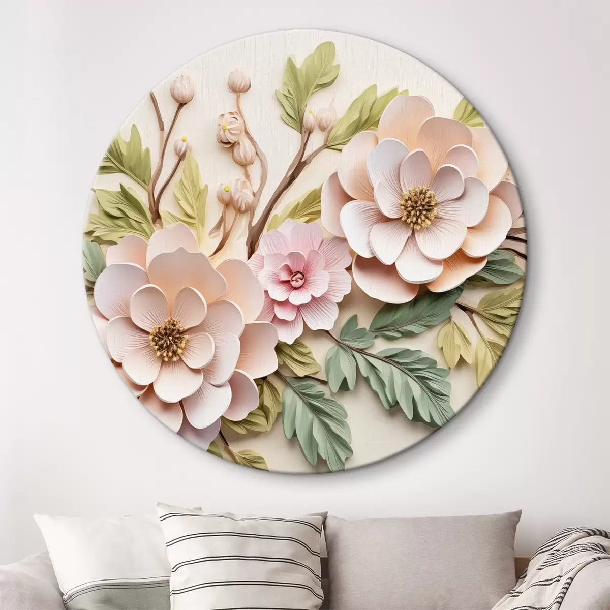 Cuadros redondos Grandes ramos de flores, imitación de molduras r43333