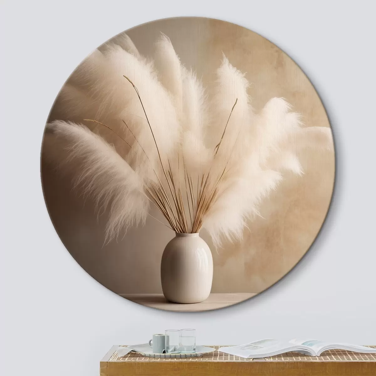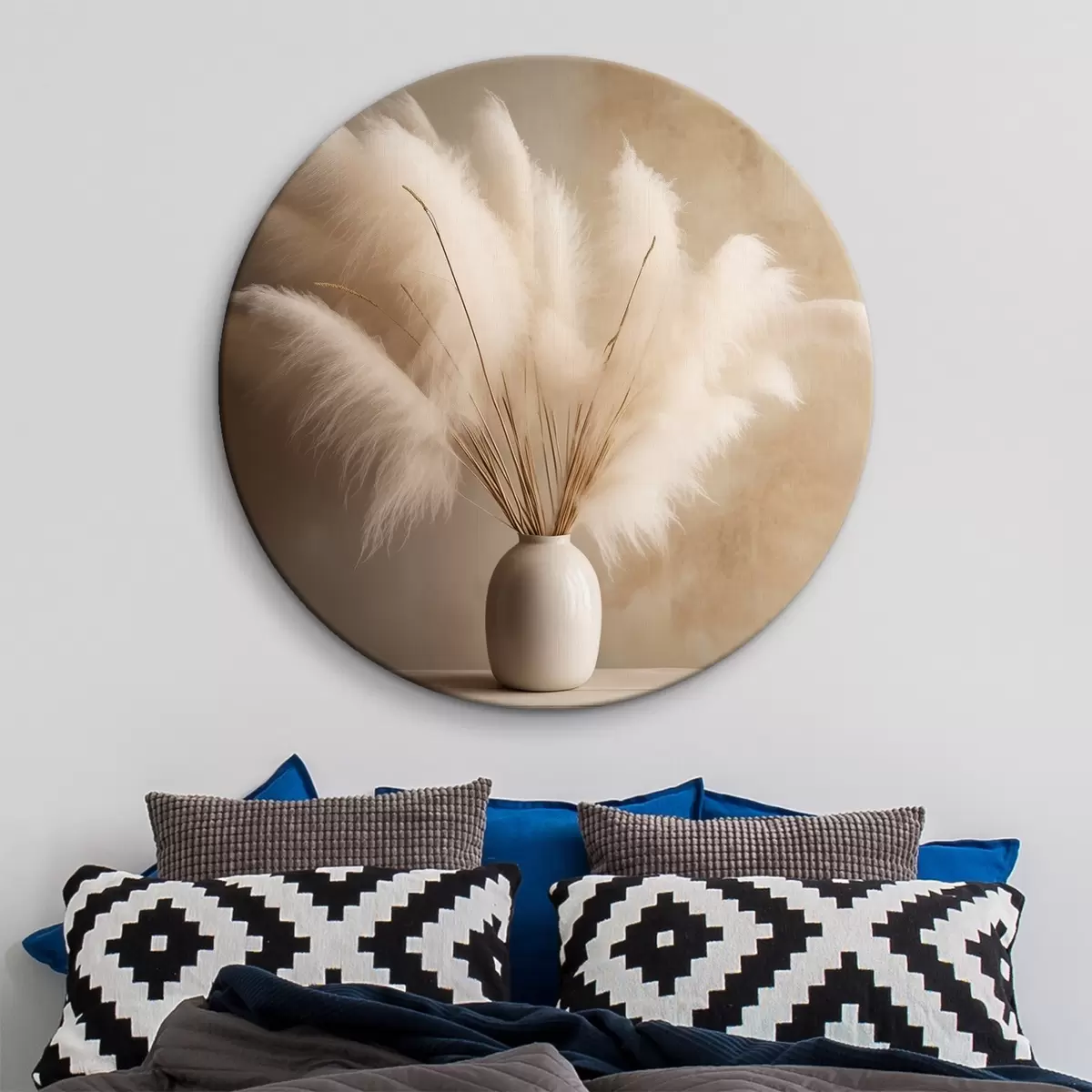 Cuadros redondos Ramas esponjosas de juncos en un jarrón sobre la mesa r43338