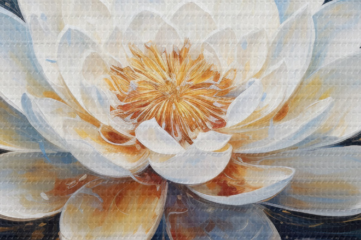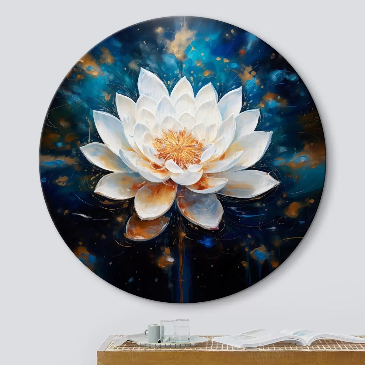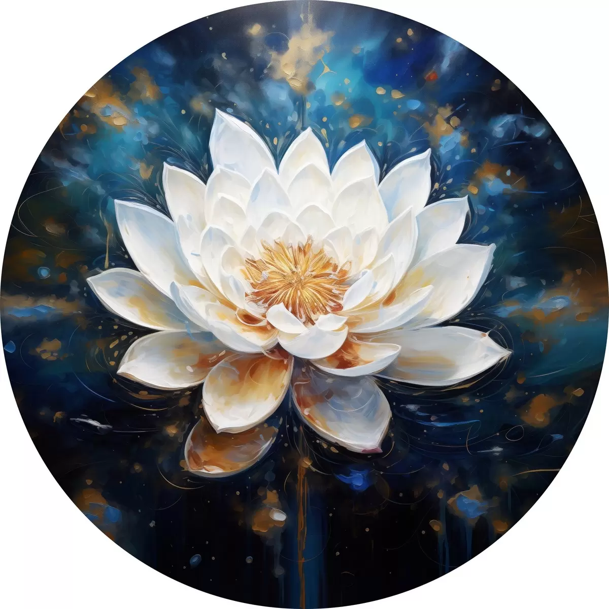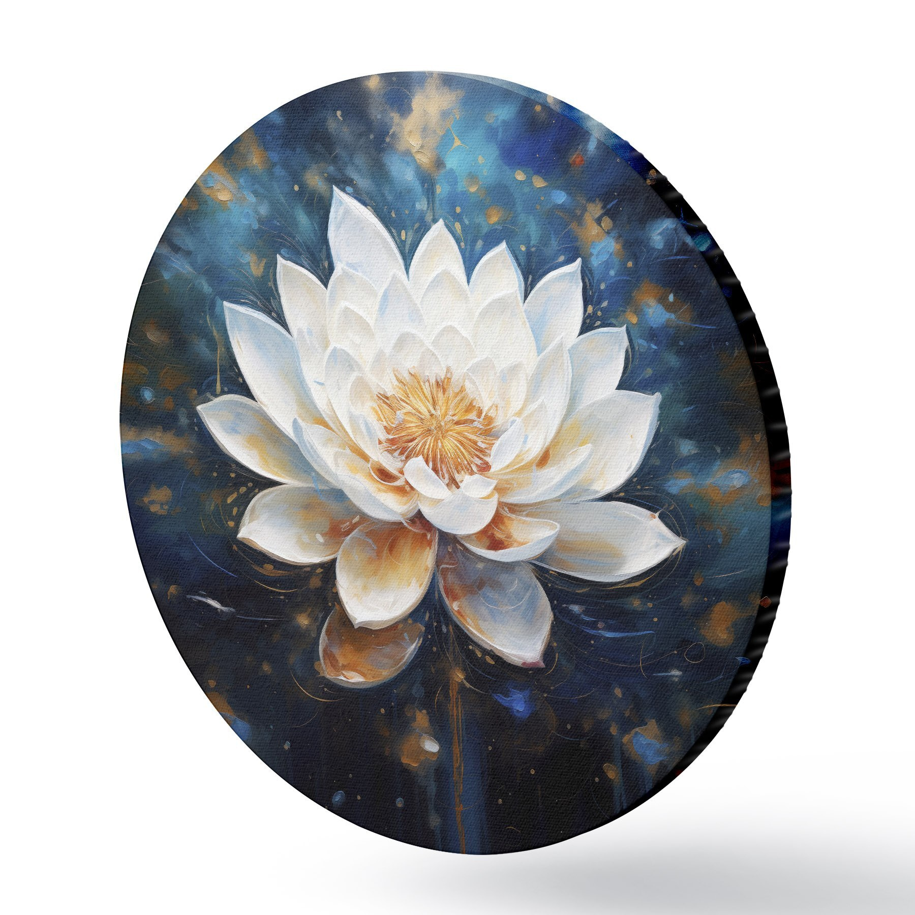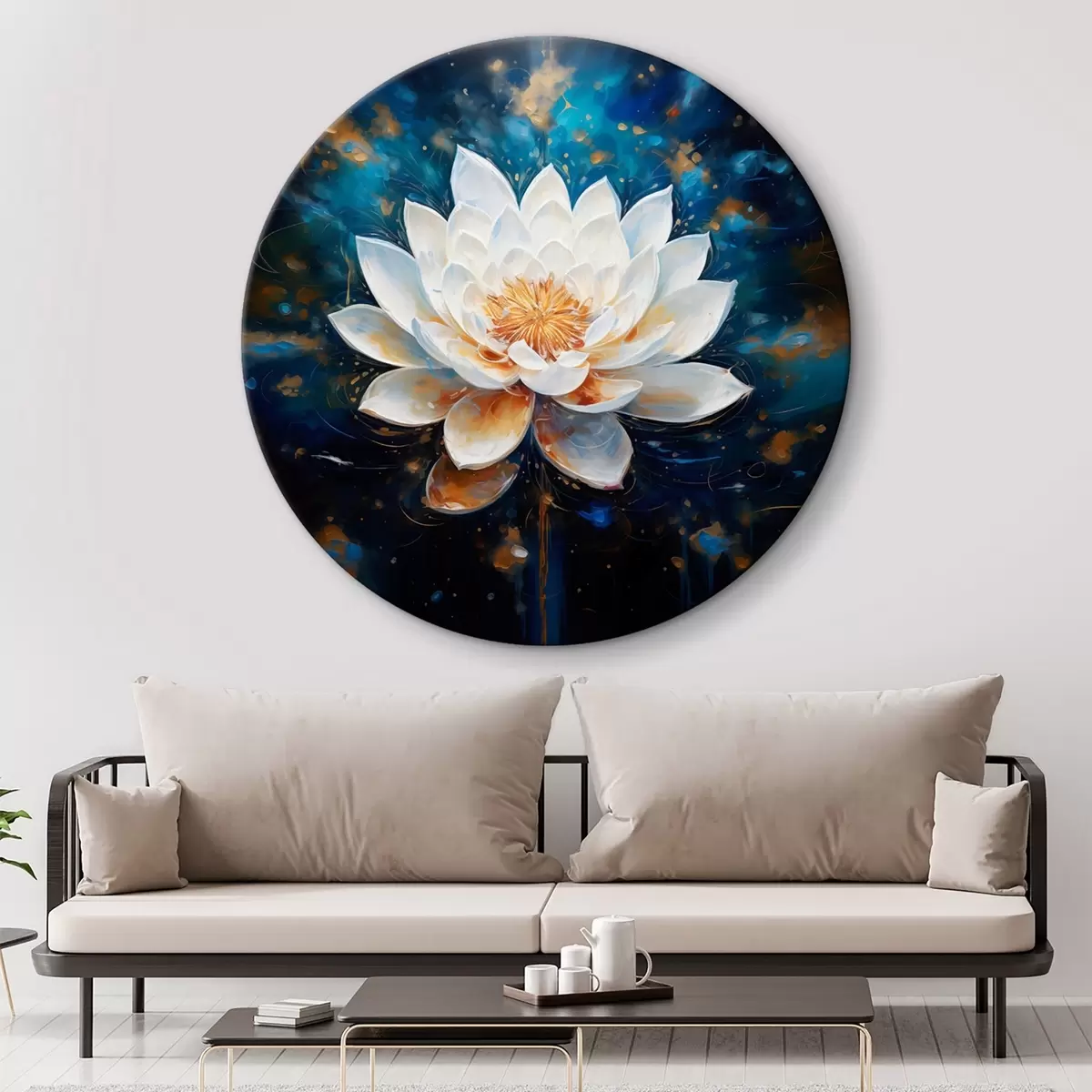 Cuadros redondos Loto blanco sobre fondo azul en estilo pictórico r43371