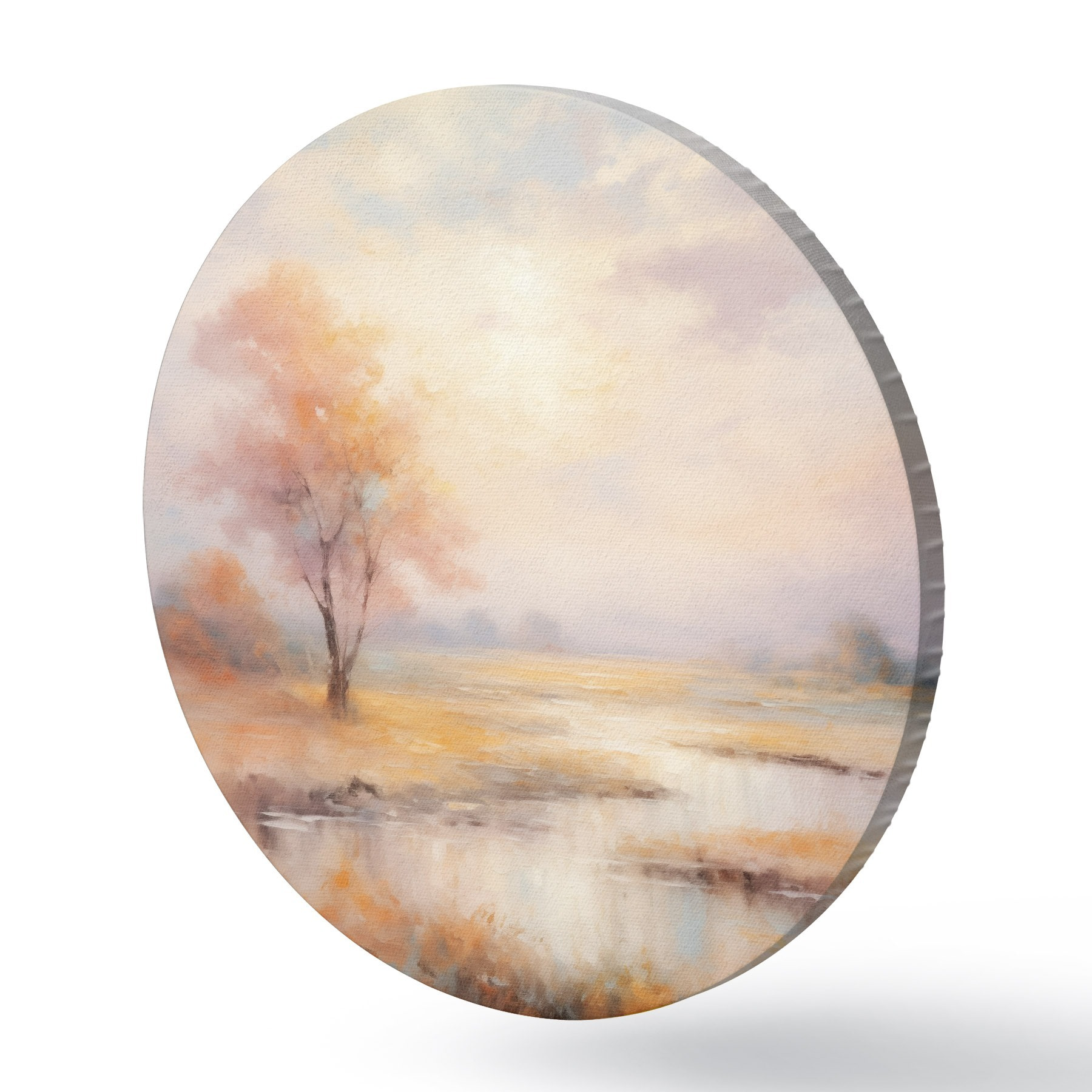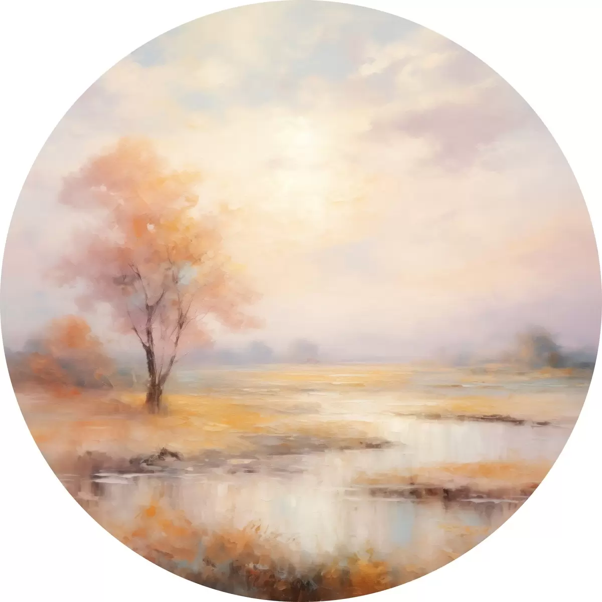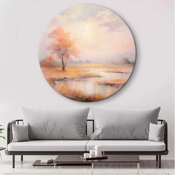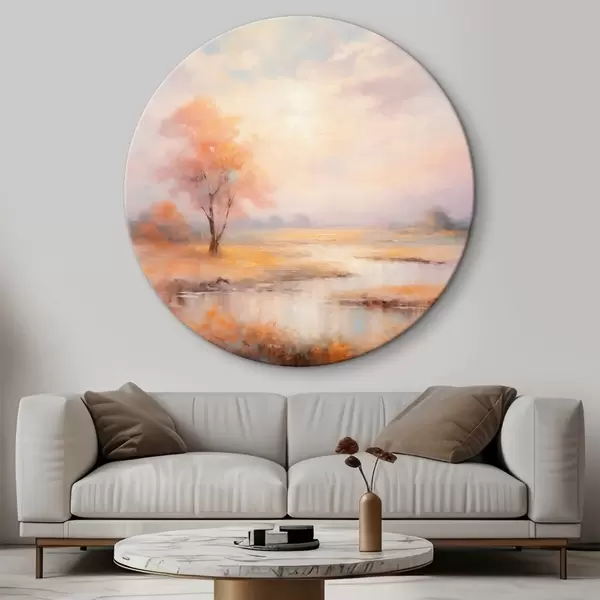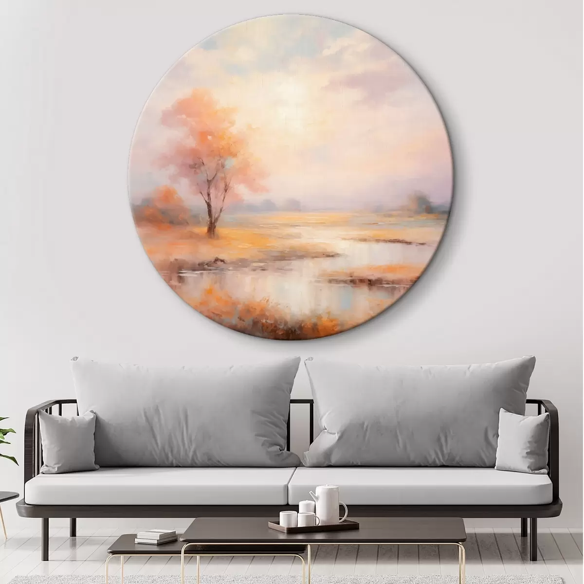 Cuadros redondos Paisaje en tonos cálidos con un río y un árbol r43375