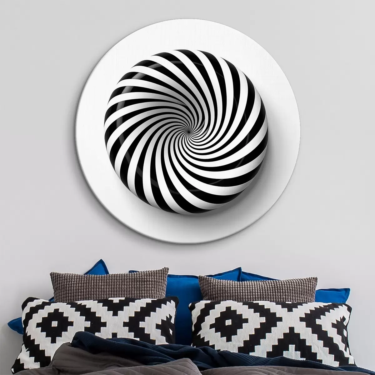 Cuadros redondos Gráfico geométrico arremolinado, gráficos negros sobre fondo blanco r43376