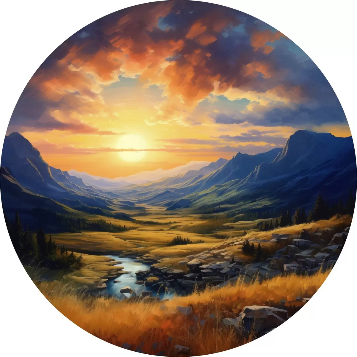 Cuadros redondos Paisaje de montaña al atardecer r43378