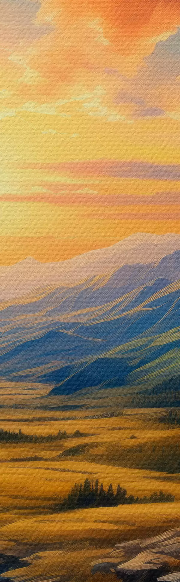 Hay tres tipos de material disponibles para pedidos: Lienzo Económico - material denso y duradero para impresión digital, idéntico al lienzo de pintor, superficie impermeable, reproducción realista de los detalles, material de grano medio. Lienzo Premium - la textura se asemeja a la de un lienzo de pintor (pequeños hilos entrelazados). Reproducción suave y detallada de la imagen sobre una superficie mate. Eco-Premium - tejido 100% algodón de alta calidad. Gracias a las fibras naturales de algodón, el material es duradero y resistente al desgaste. Excelente reproducción del color y el detalle.