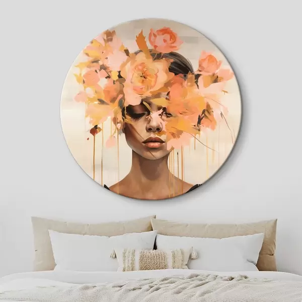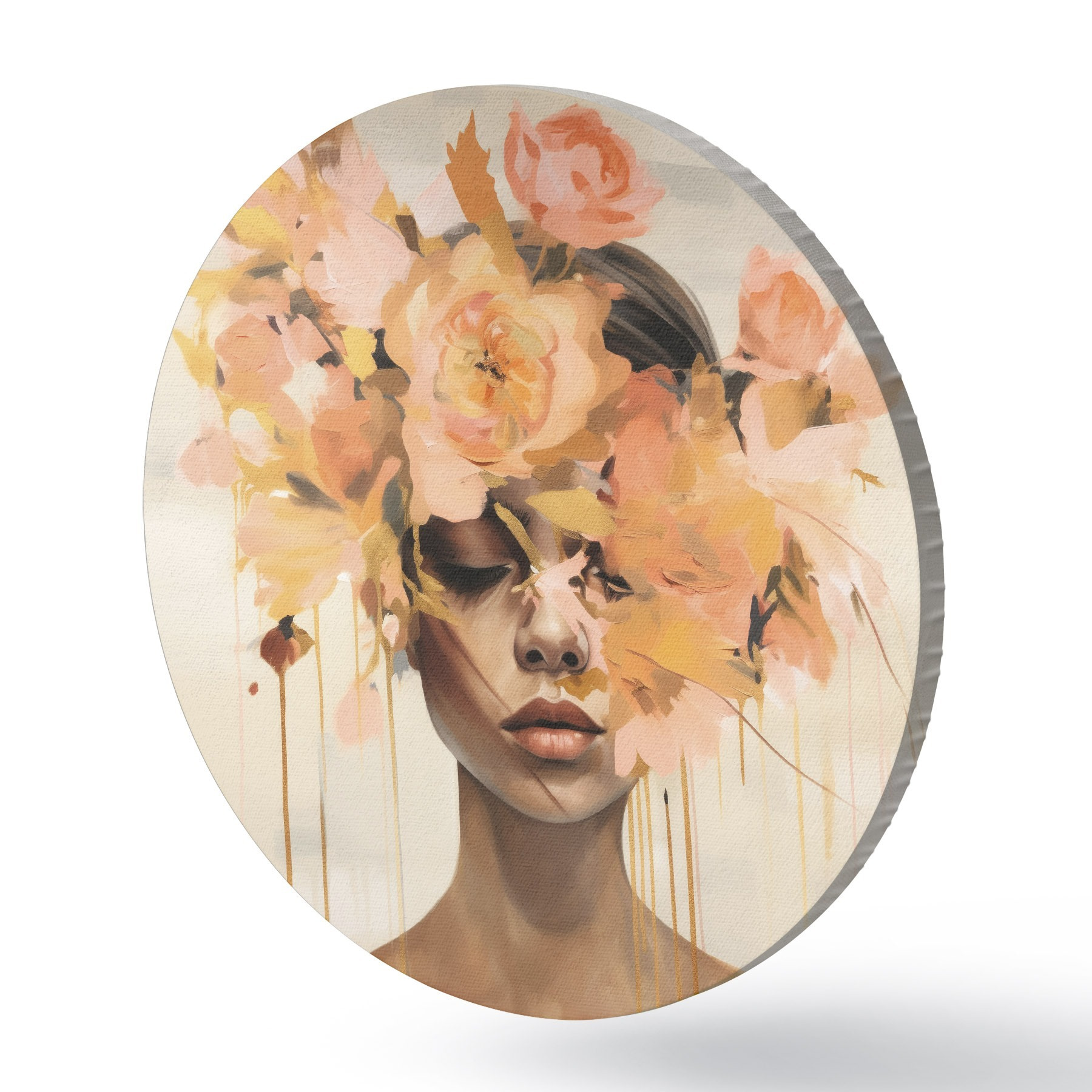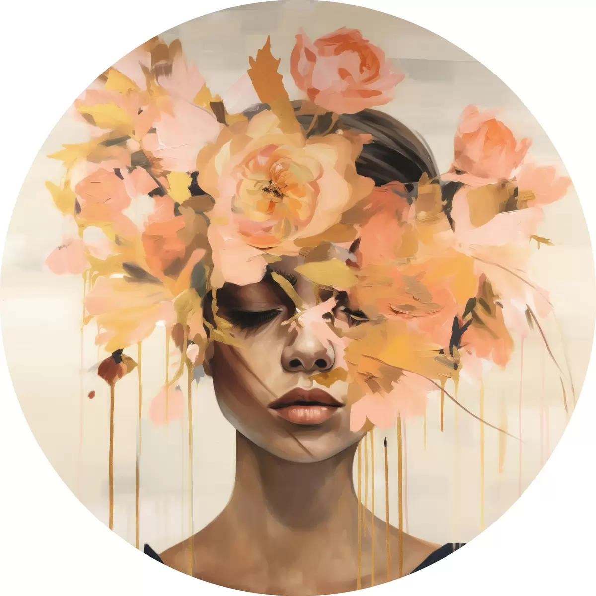 Cuadros redondos Niña con pintura en la cara y flores en la cabeza r43382