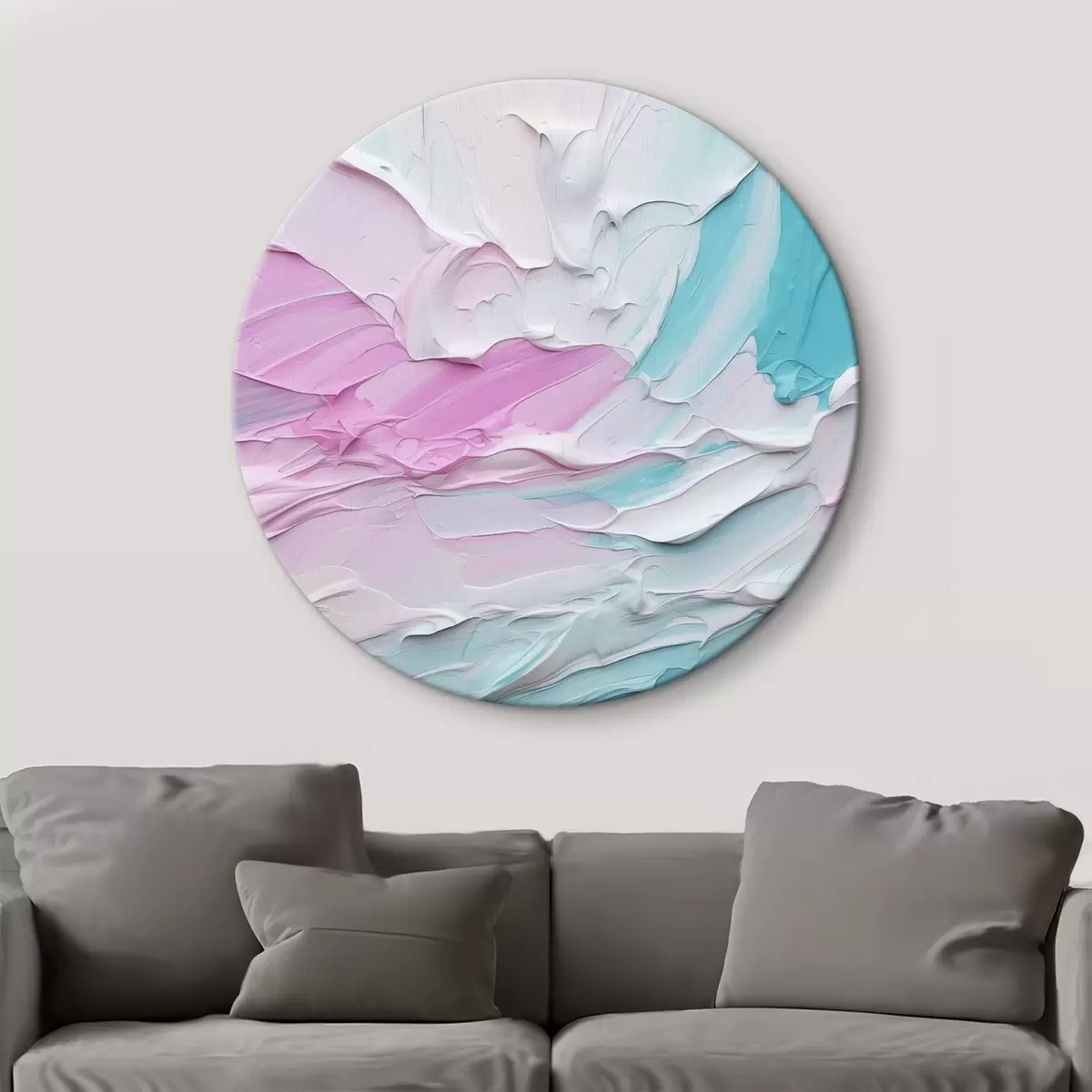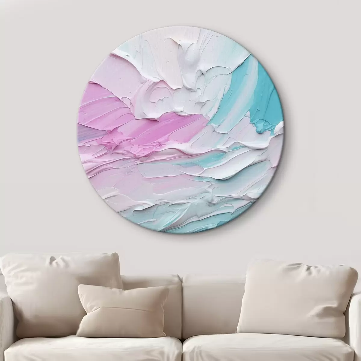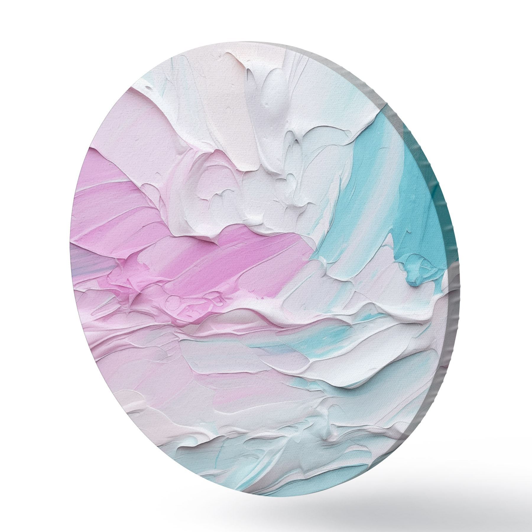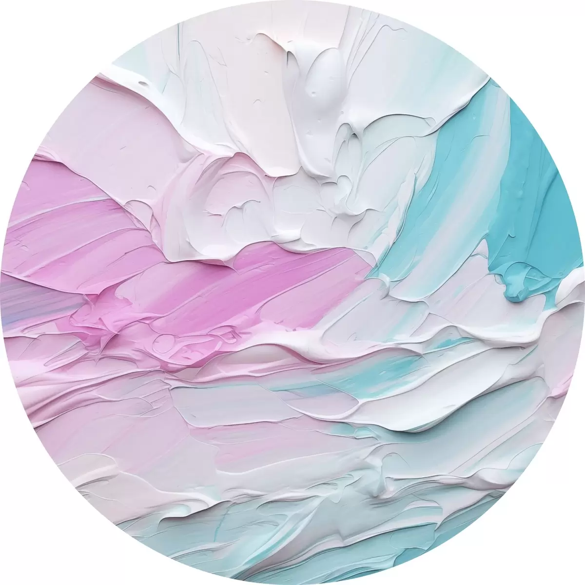 Cuadros redondos Imitación abstracta de pintura al óleo con gruesas pinceladas de pintura rosa, blanca y turquesa, que crean un efecto texturizado r43393