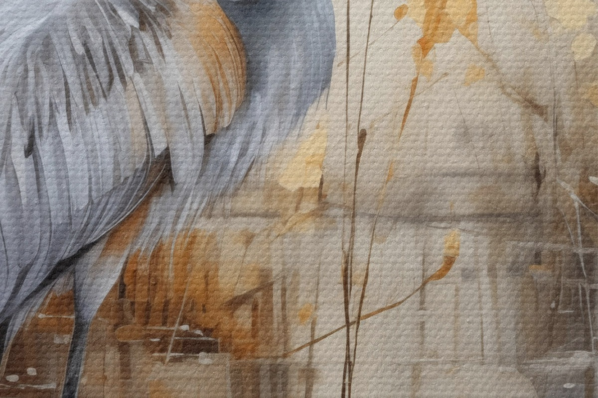 Foto Una garza real de pie en un estanque , rodeada de plantas altas y delgadas, el fondo es una suave mezcla de beige y blanco Nr r43398