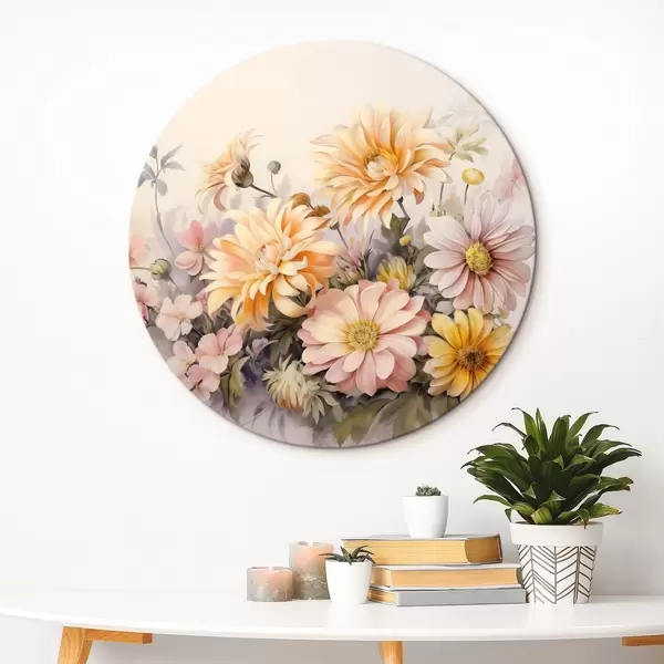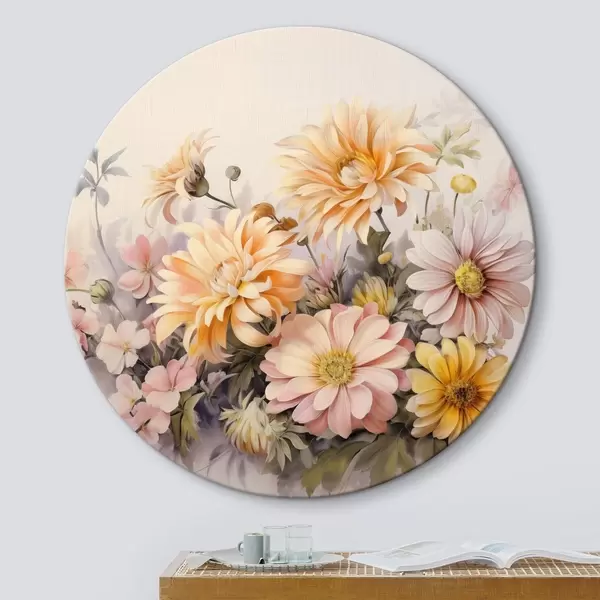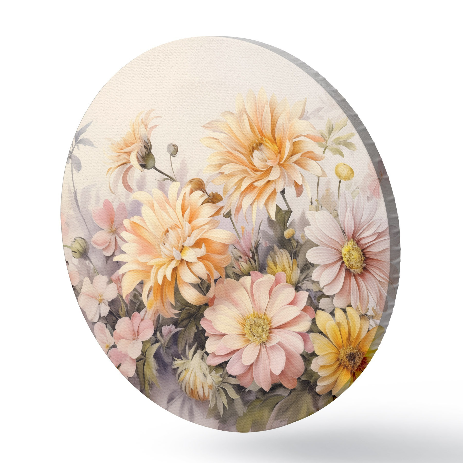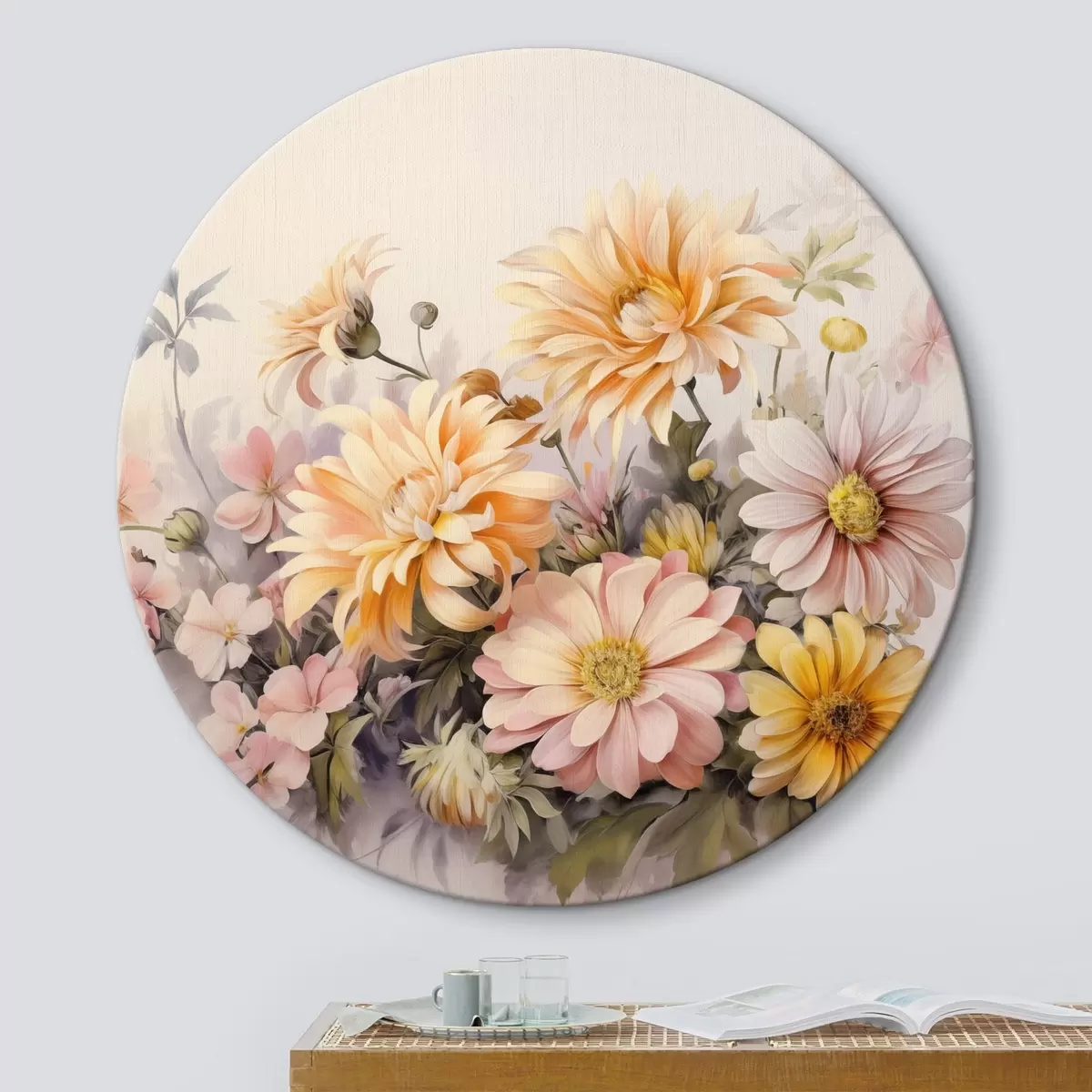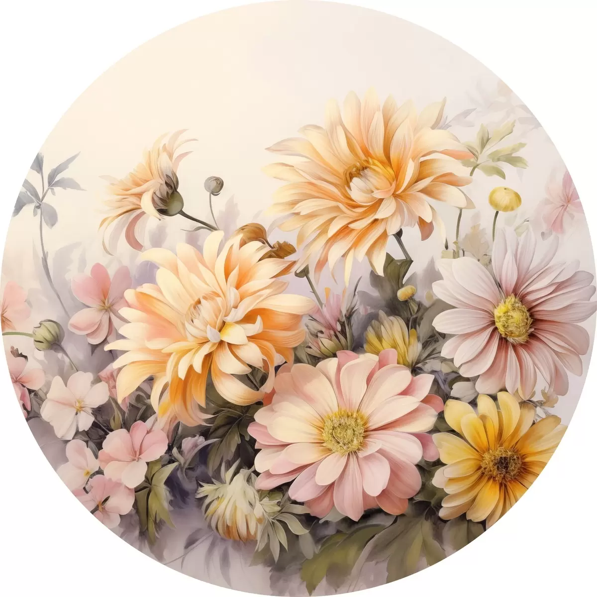 Cuadros redondos Colección de flores rosas, amarillas y naranjas, fondo claro, colores suaves, estilo vintage, ilustración botánica r43401