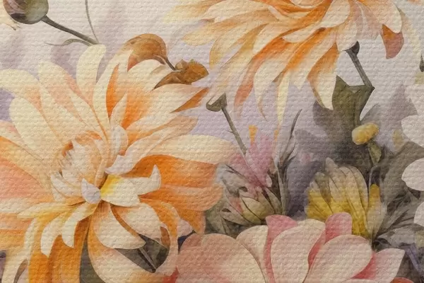 Foto Colección de flores rosas, amarillas y naranjas, fondo claro, colores suaves, estilo vintage, ilustración botánica Nr r43401