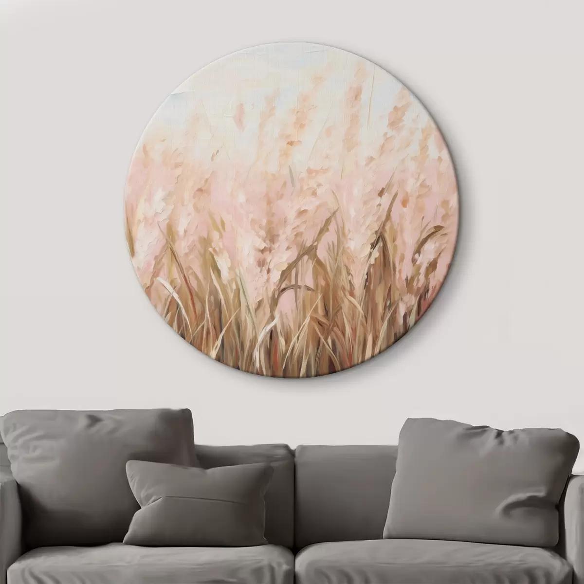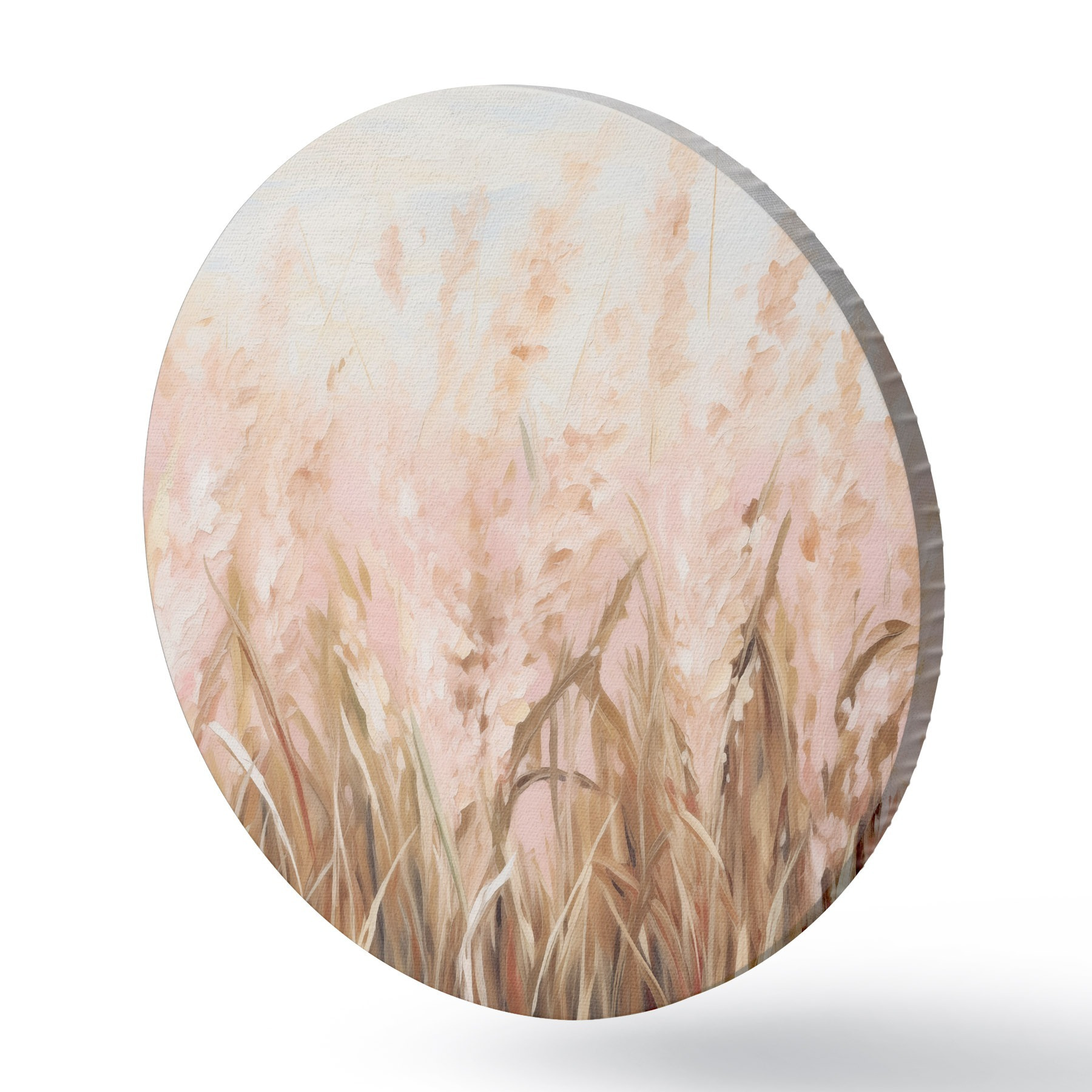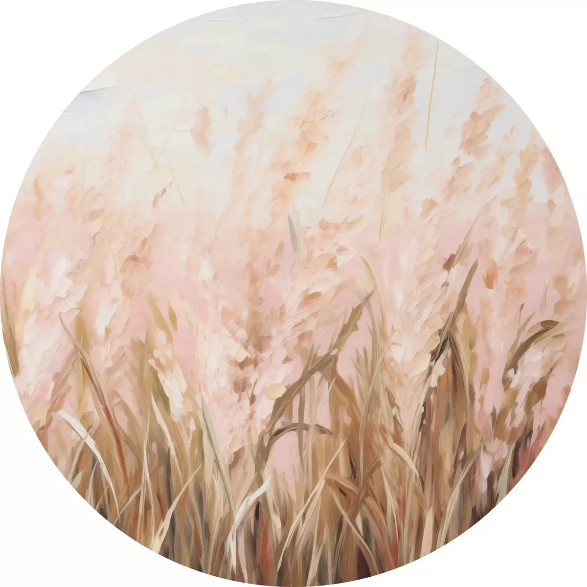 Cuadros redondos Campo de hierba de la Pampa con tonos rosas y marrones, pinceladas suaves, pintura al óleo abstracta imitación arte r43403