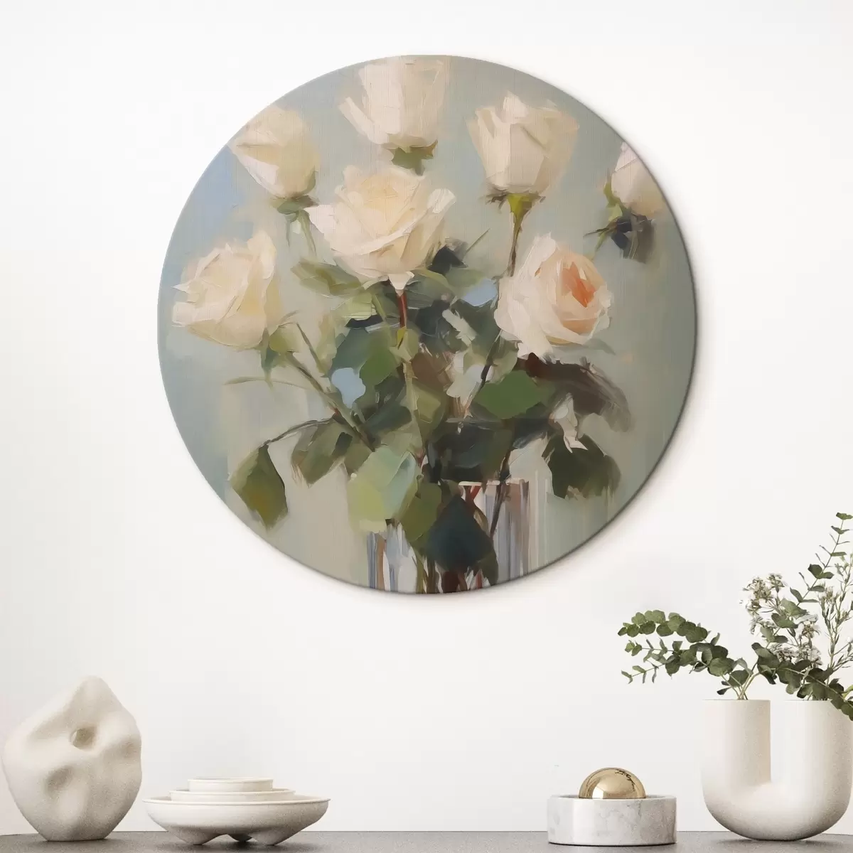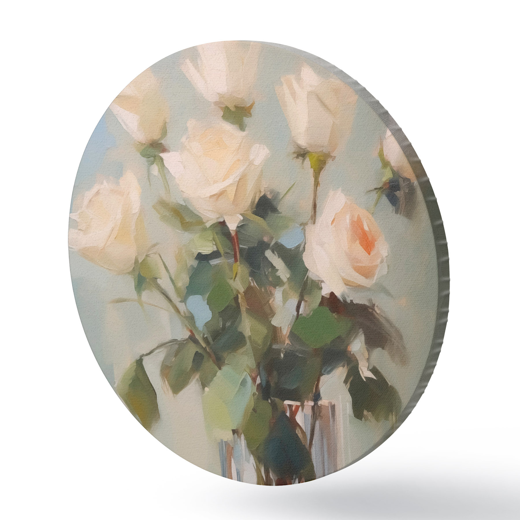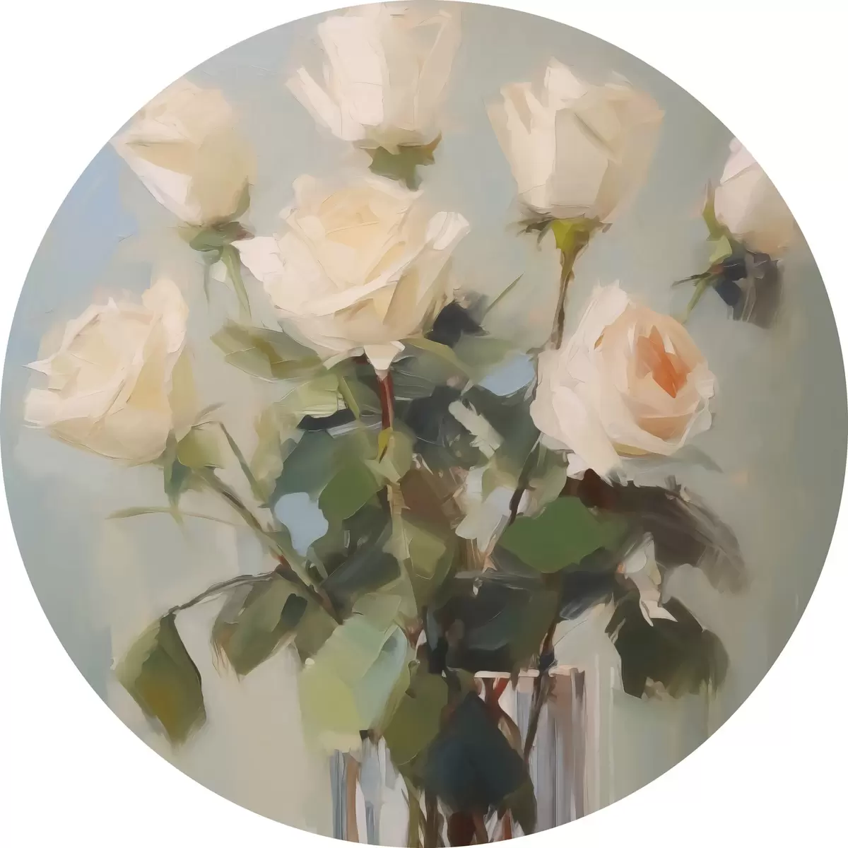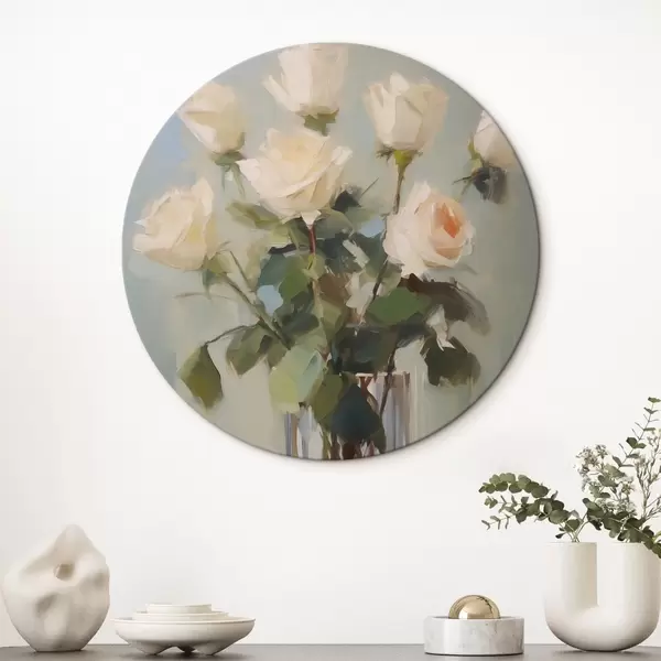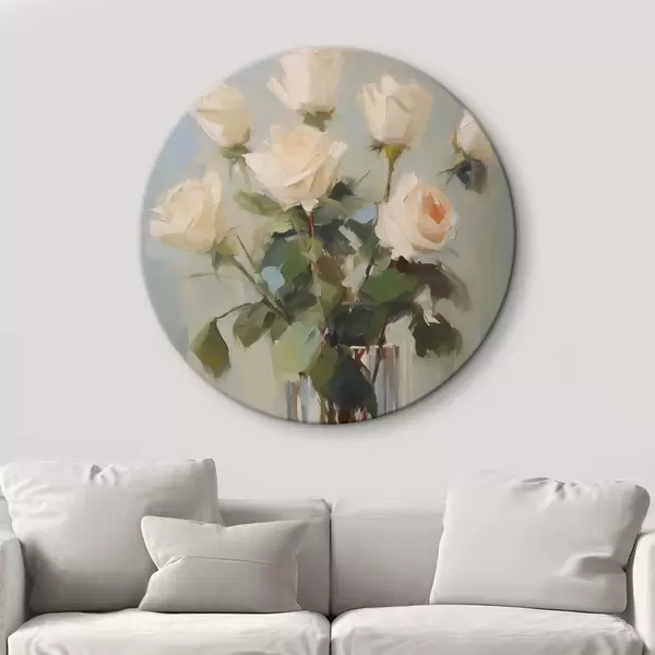 Cuadros redondos Pintura imitación de rosas en jarrón de cristal r43432