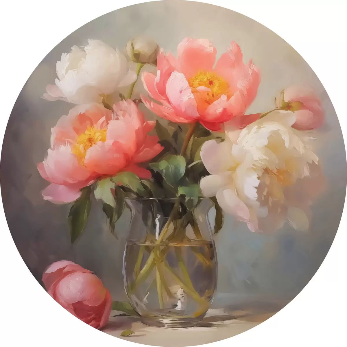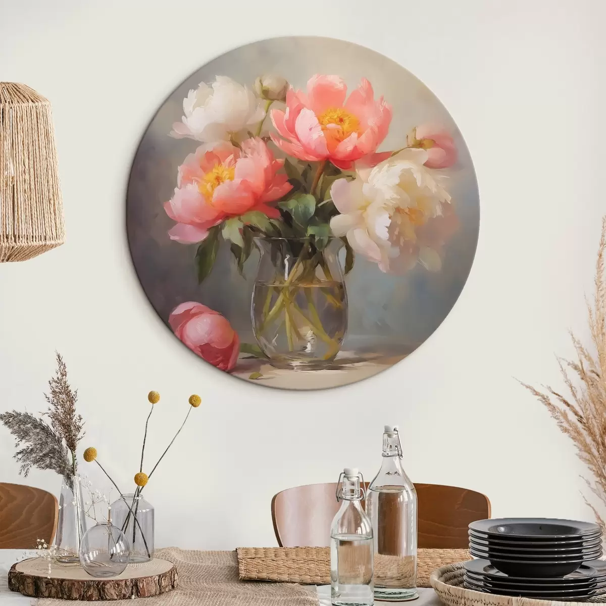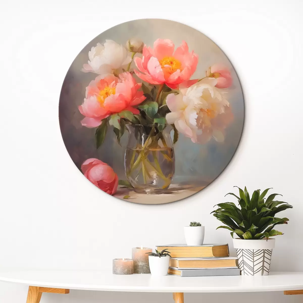 Cuadros redondos Peonías en un jarrón imitación pintura r43438