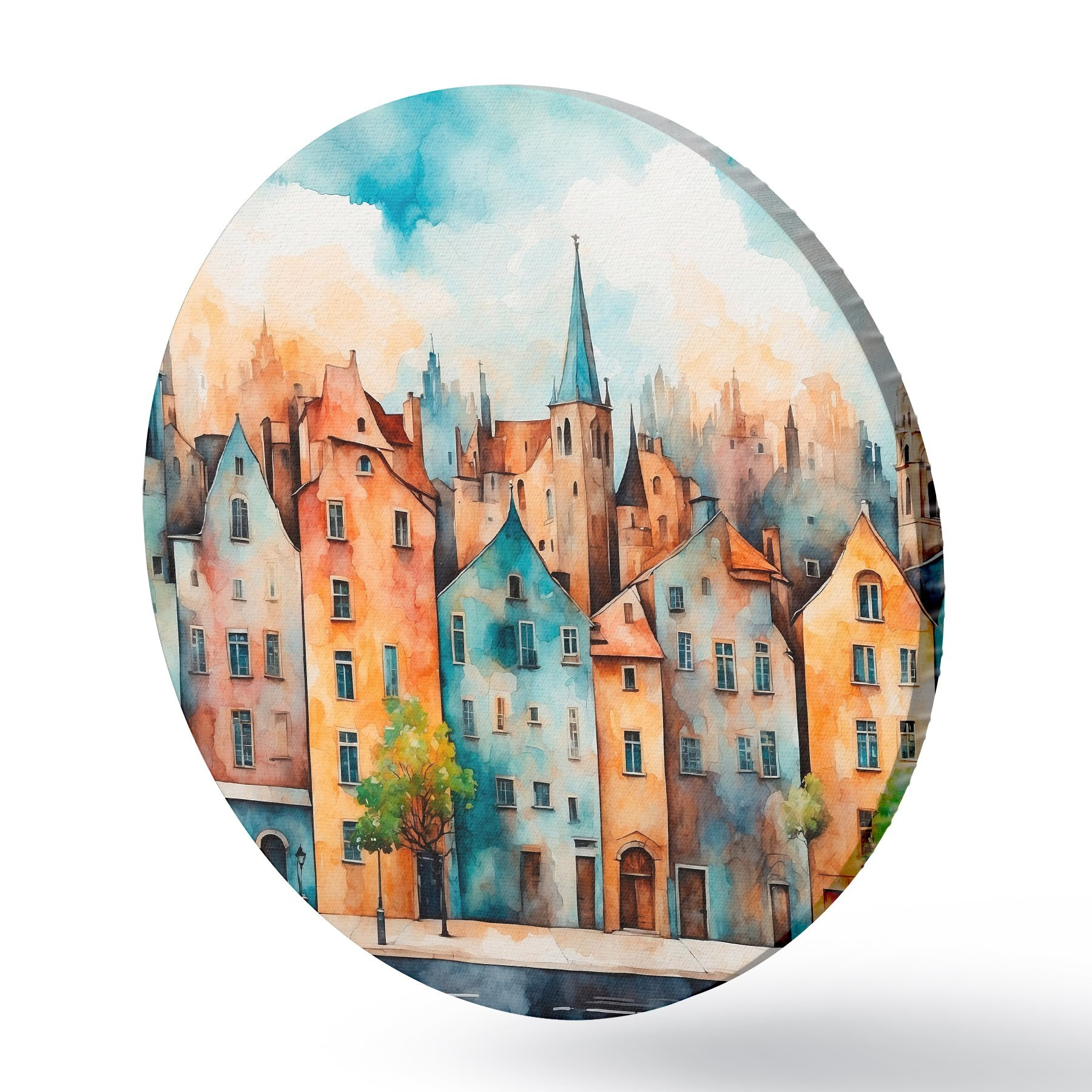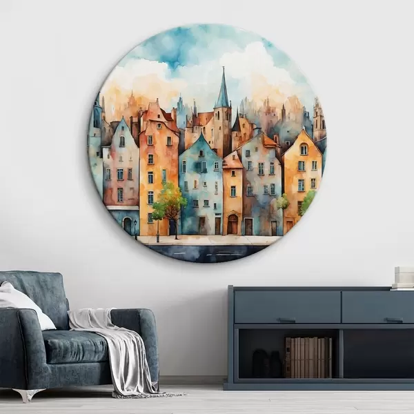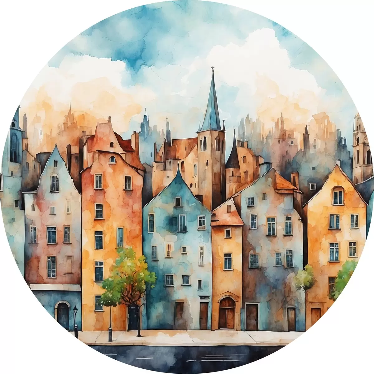 Cuadros redondos Ciudad europea en estilo pintura acuarela r43441