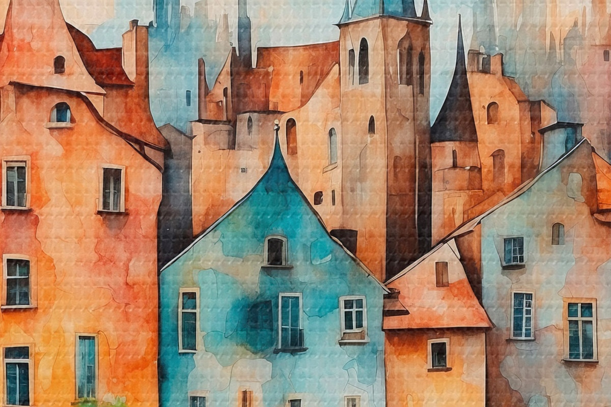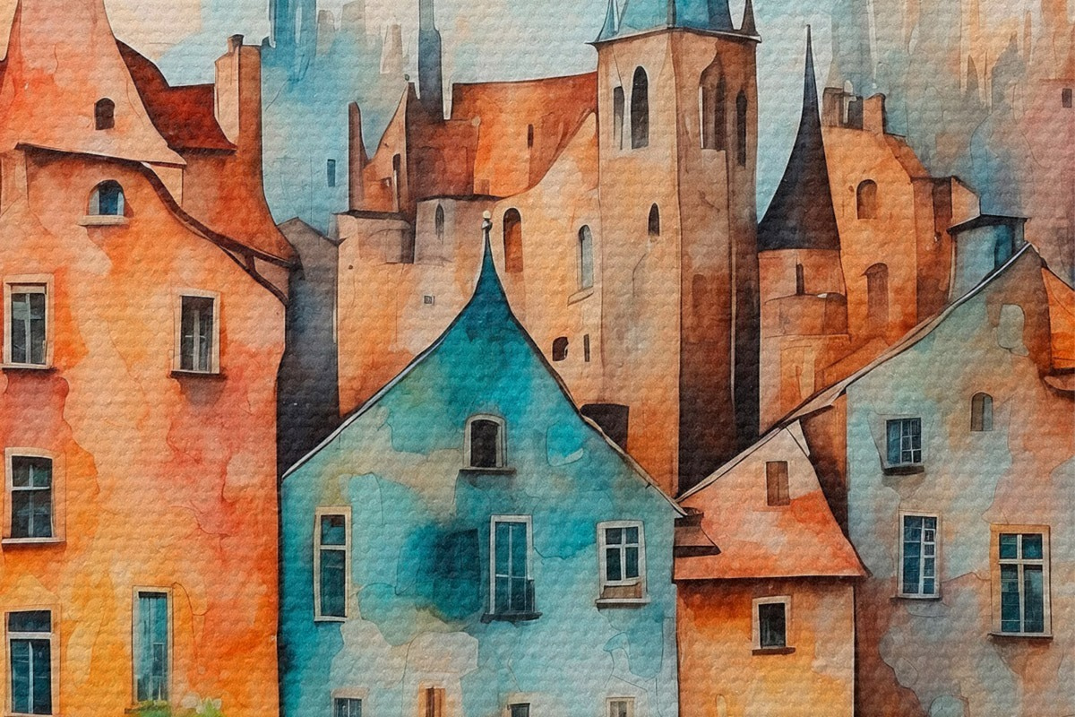 Foto Ciudad europea en estilo pintura acuarela Nr r43441