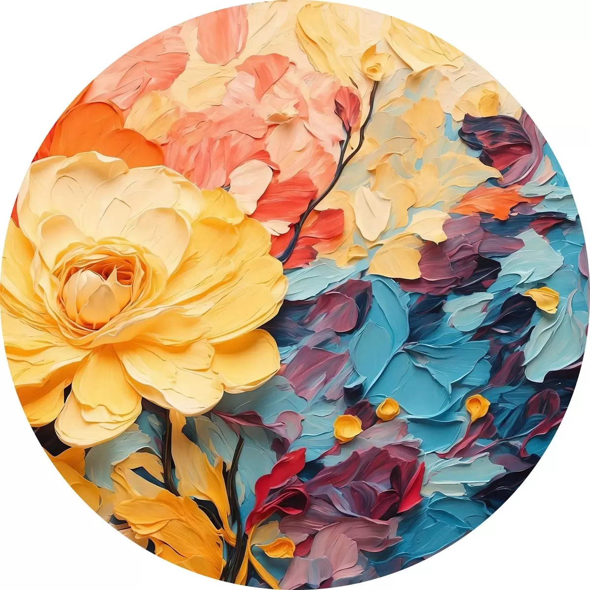 Cuadros redondos Flores sobre fondo abstracto al óleo r43442