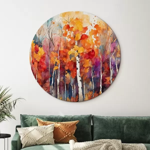 Cuadros redondos Bosque de abedules en estilo acuarela r43447