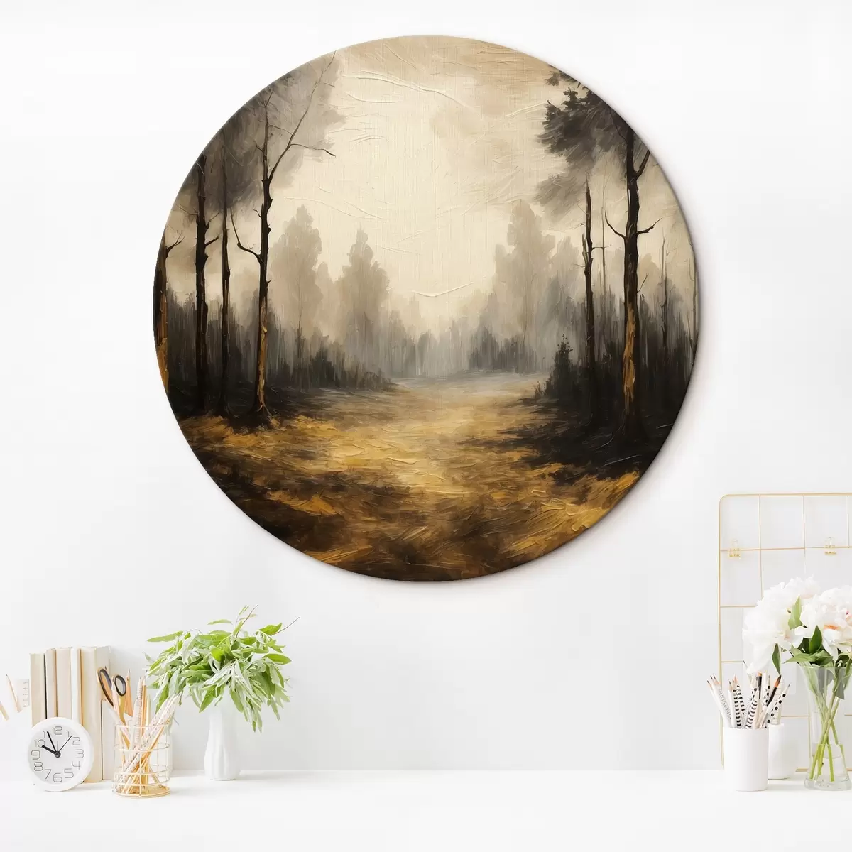 Cuadros redondos Bosque negro en estilo de pintura acrílica r43448