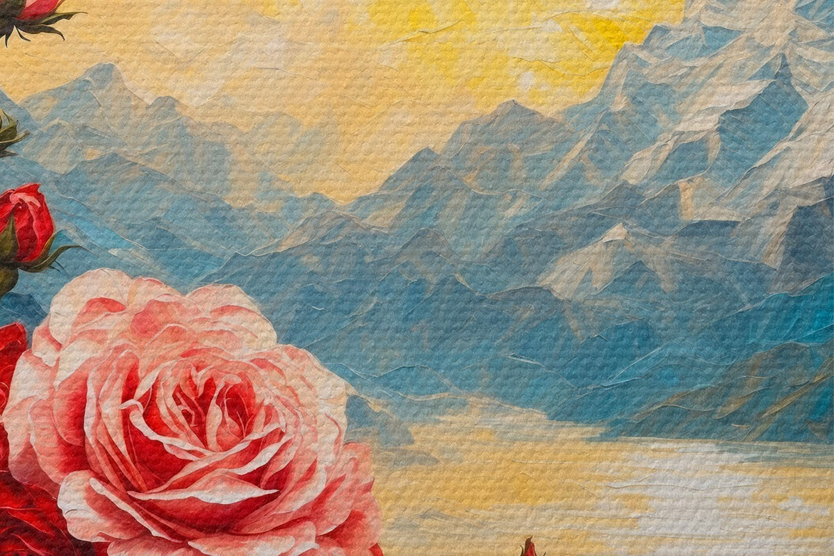 Foto Rosas sobre fondo de montañas al óleo Nr r43457