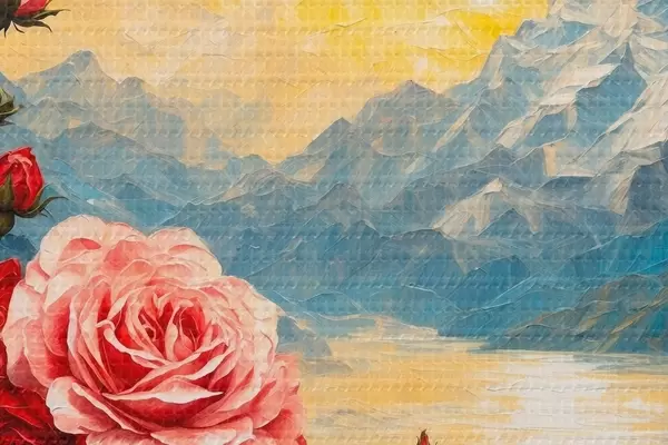 Foto Rosas sobre fondo de montañas al óleo Nr r43457