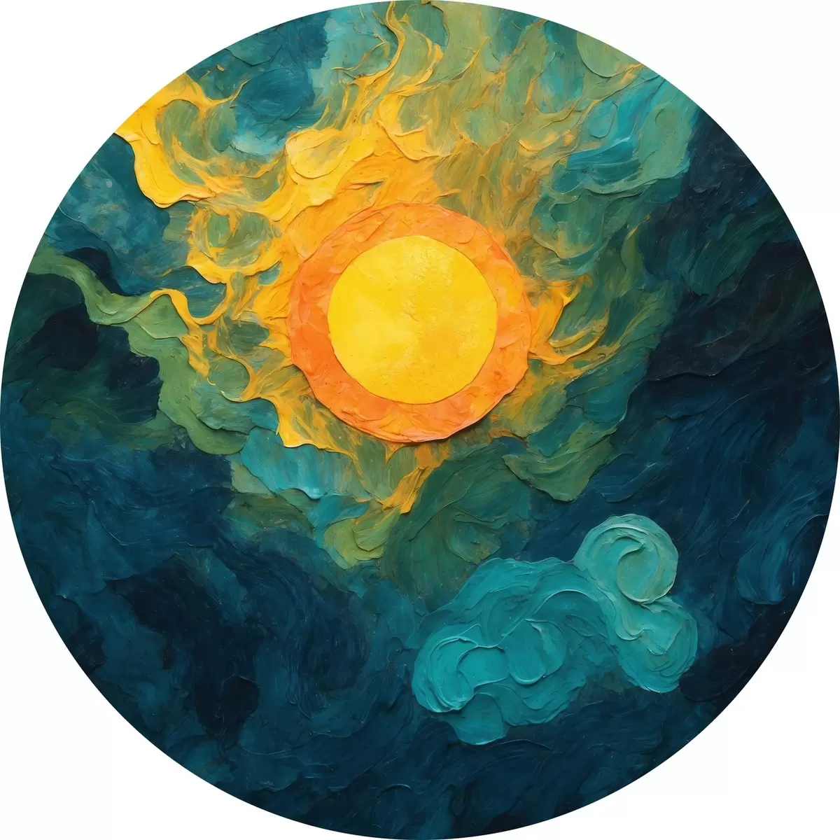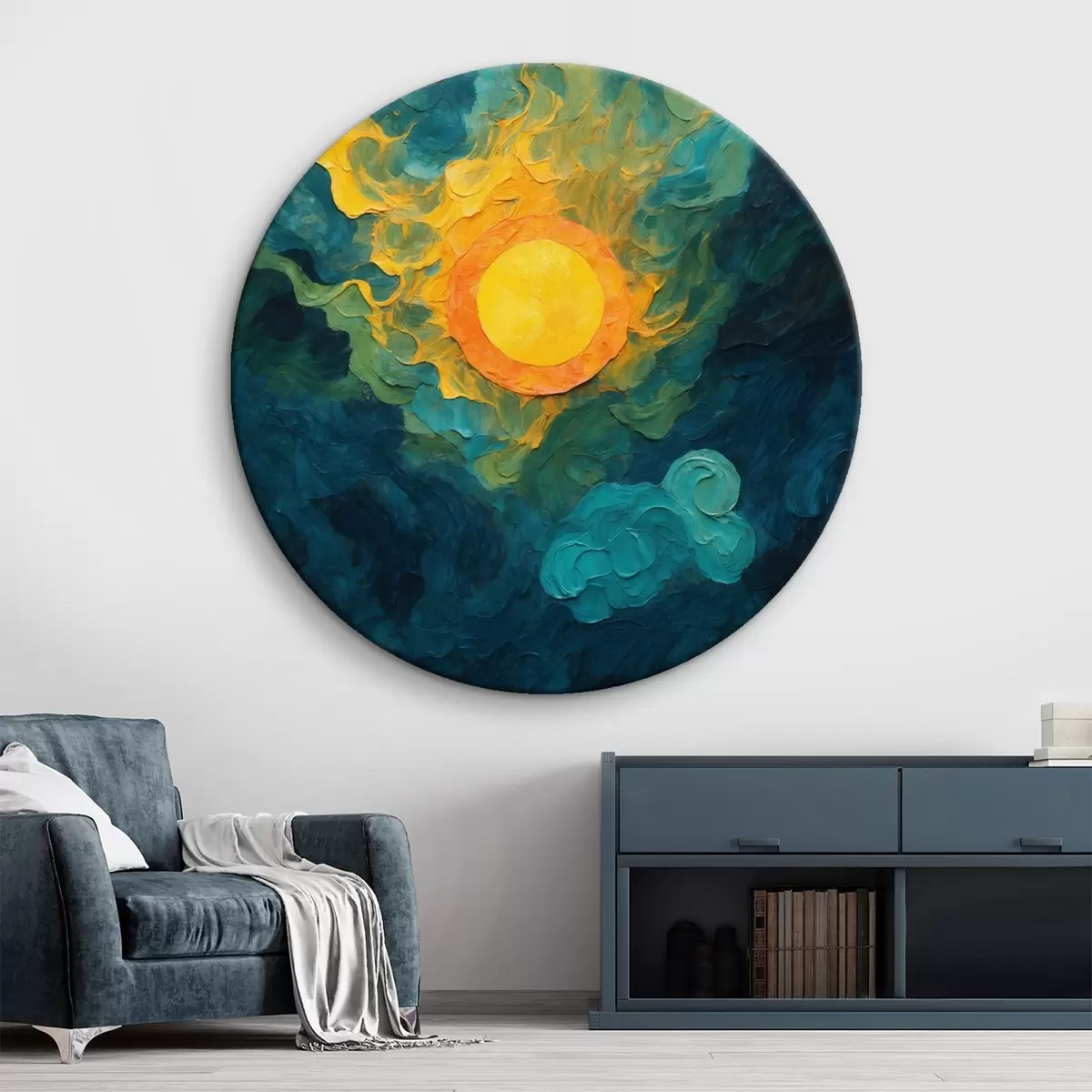 Cuadros redondos Sol sobre fondo oscuro al óleo r43459
