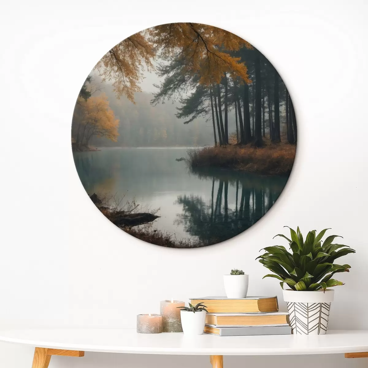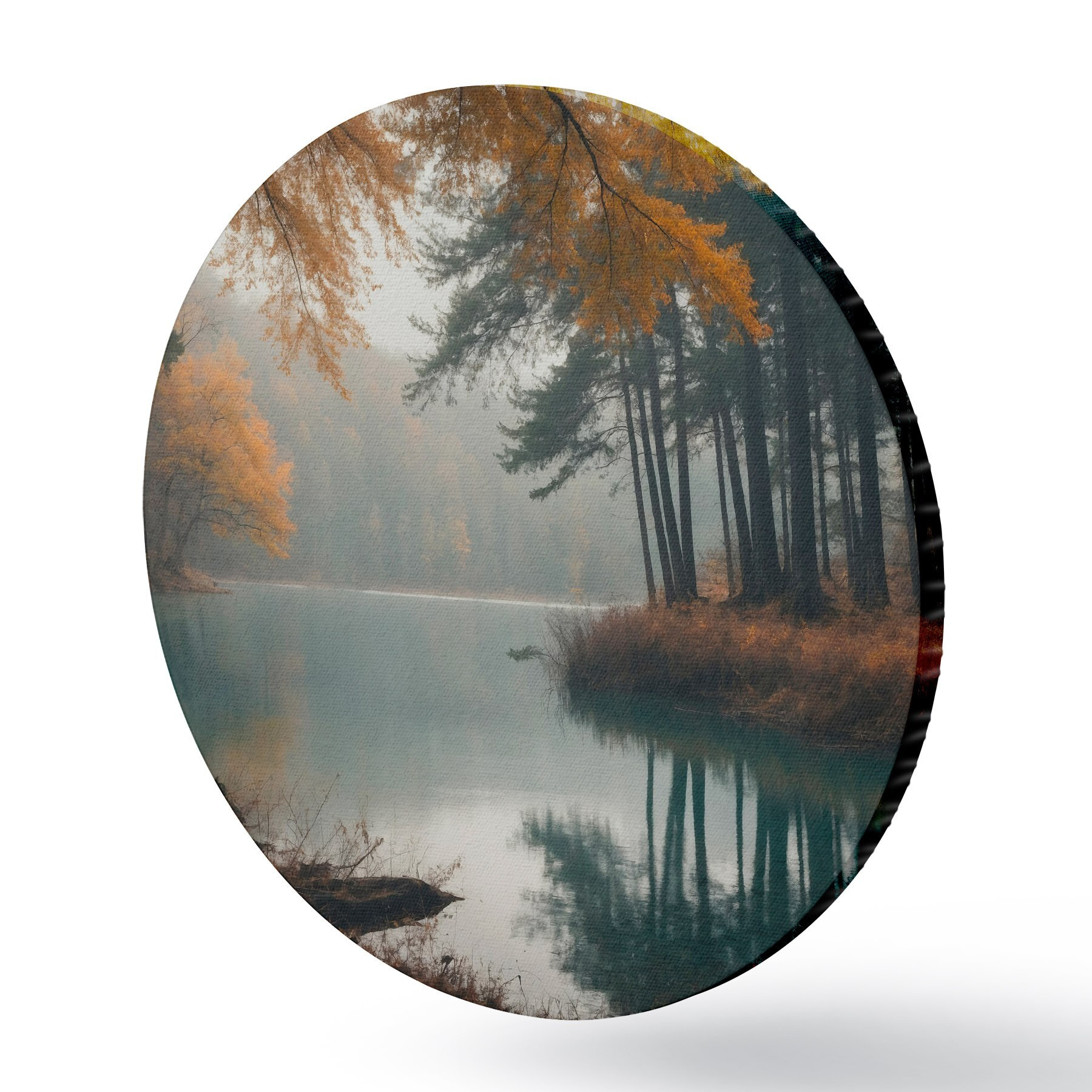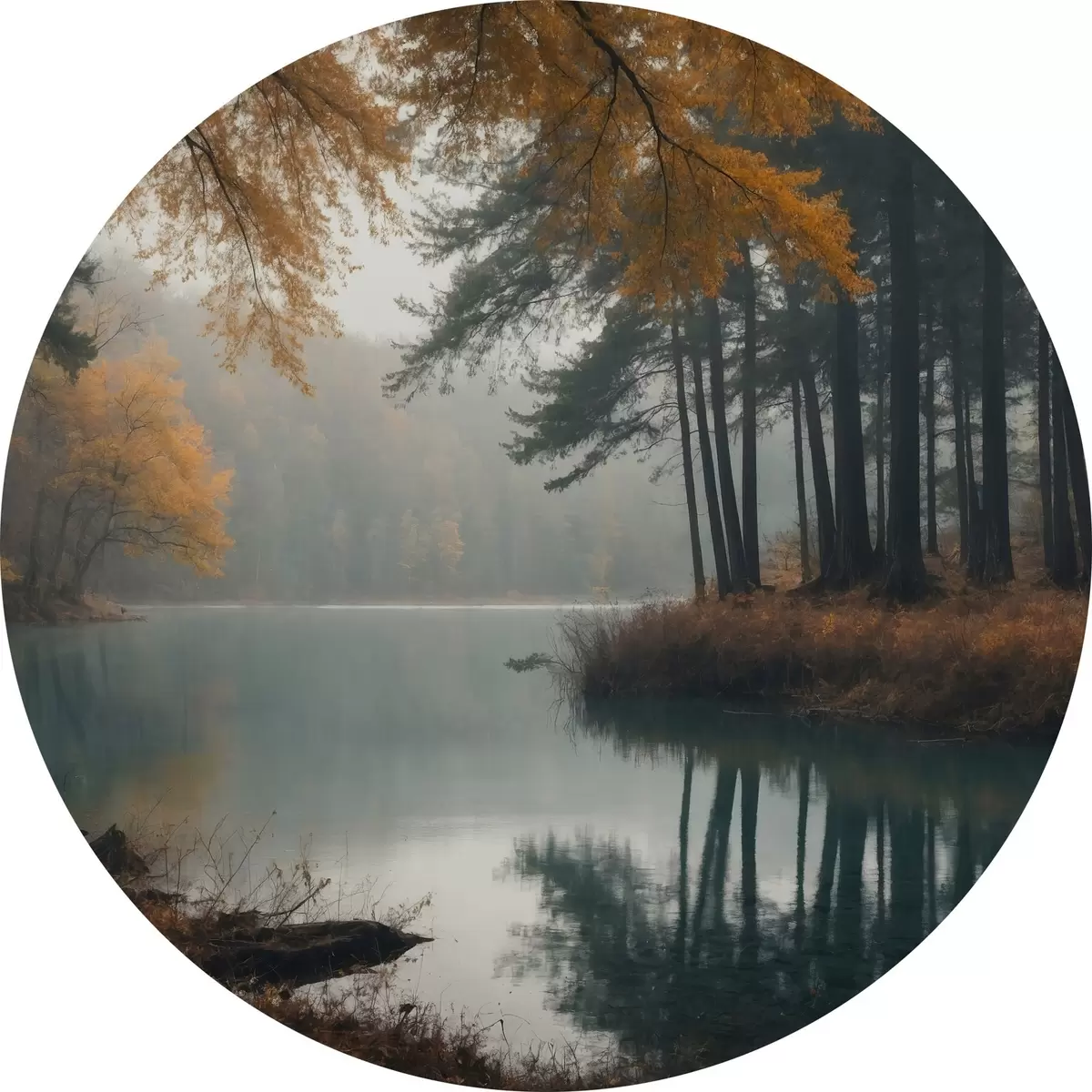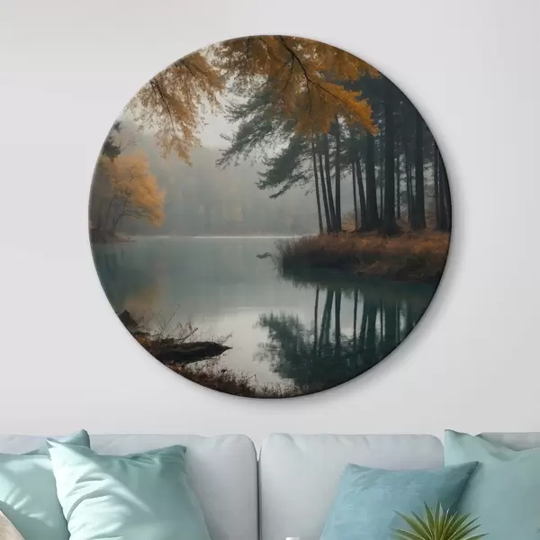 Cuadros redondos Lago en un bosque otoñal r43463