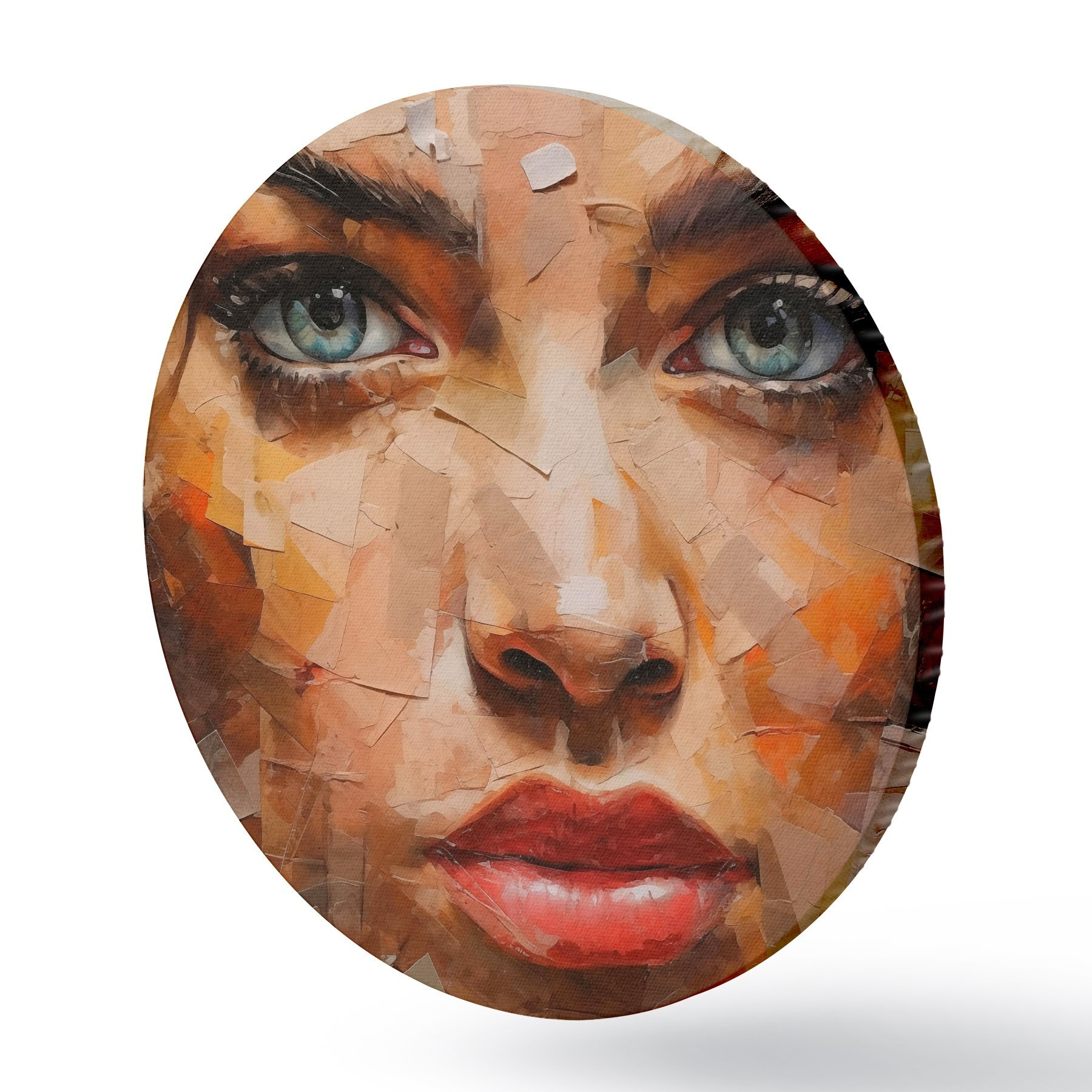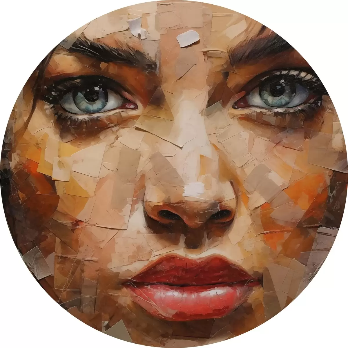 Cuadros redondos Cara de niña hecha de periódicos r43467
