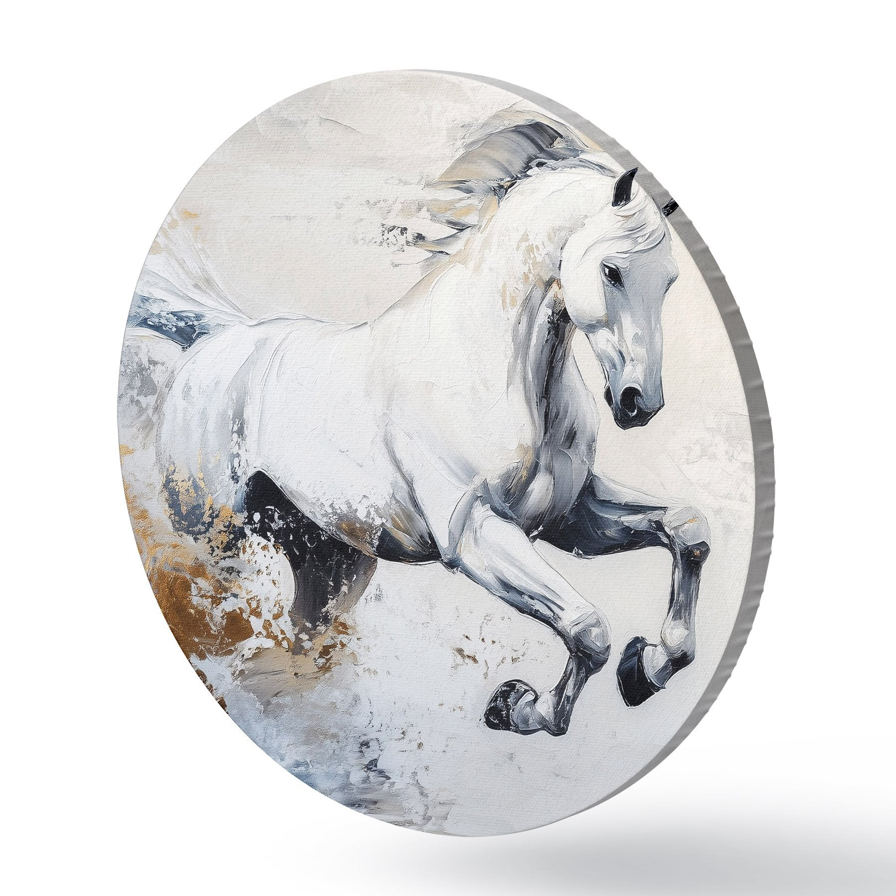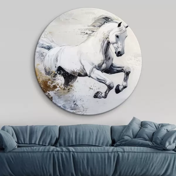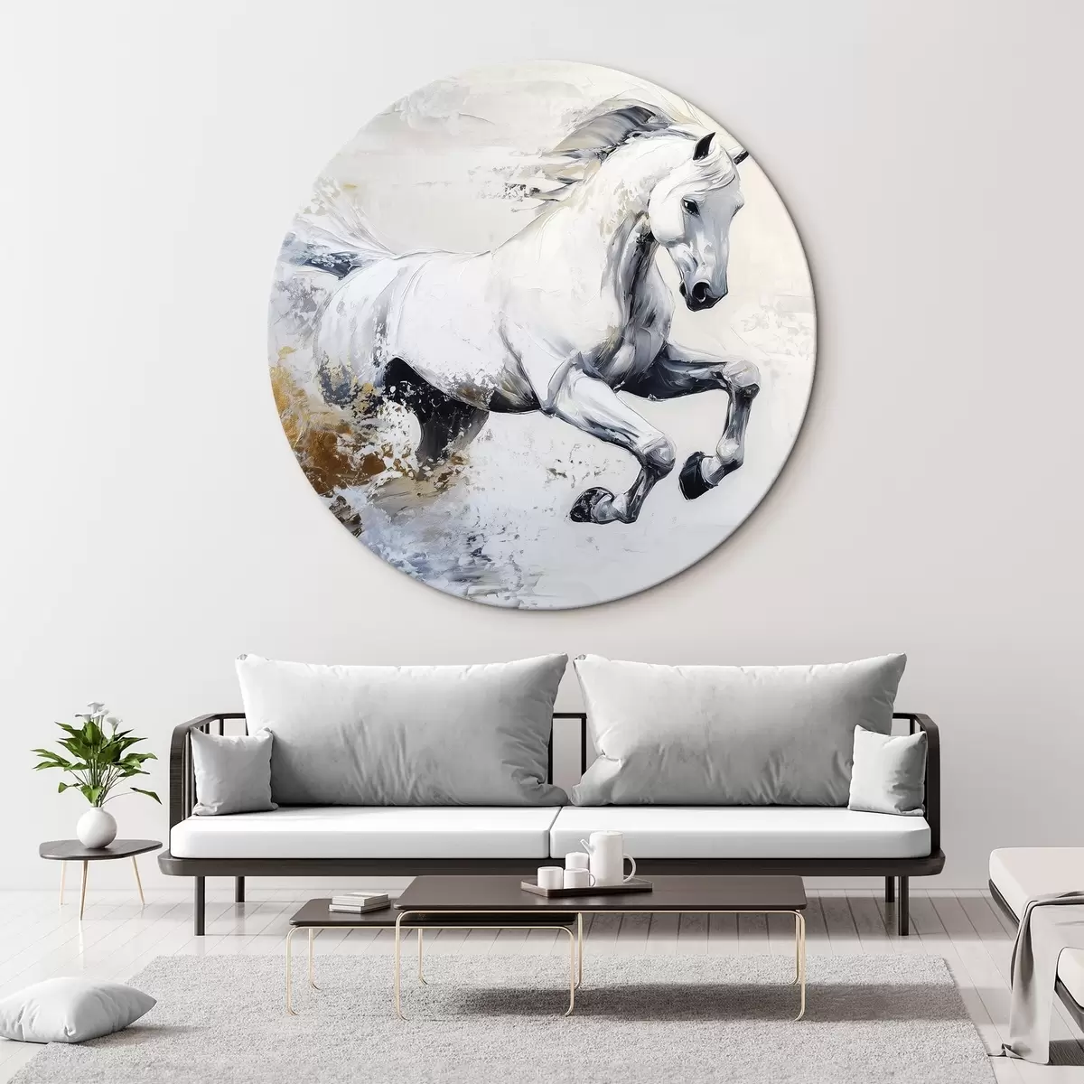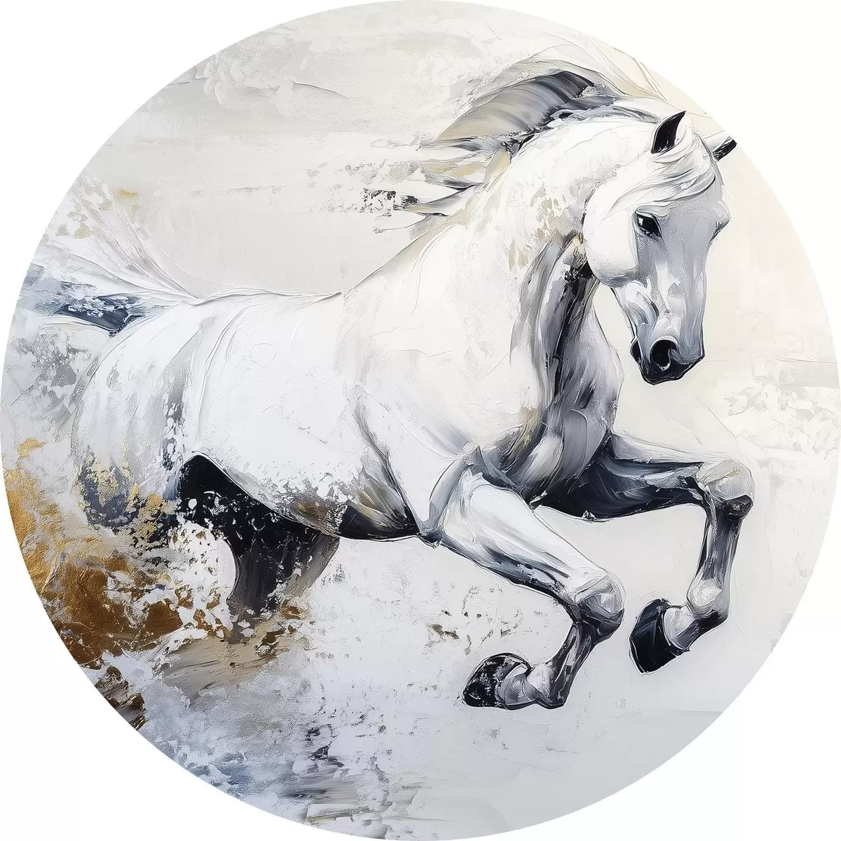 Cuadros redondos Caballo blanco corriendo, dibujo al óleo, animales r43498