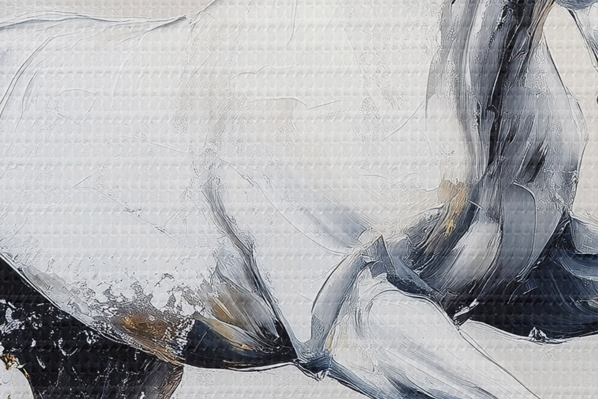 Foto Caballo blanco corriendo, dibujo al óleo, animales Nr r43498