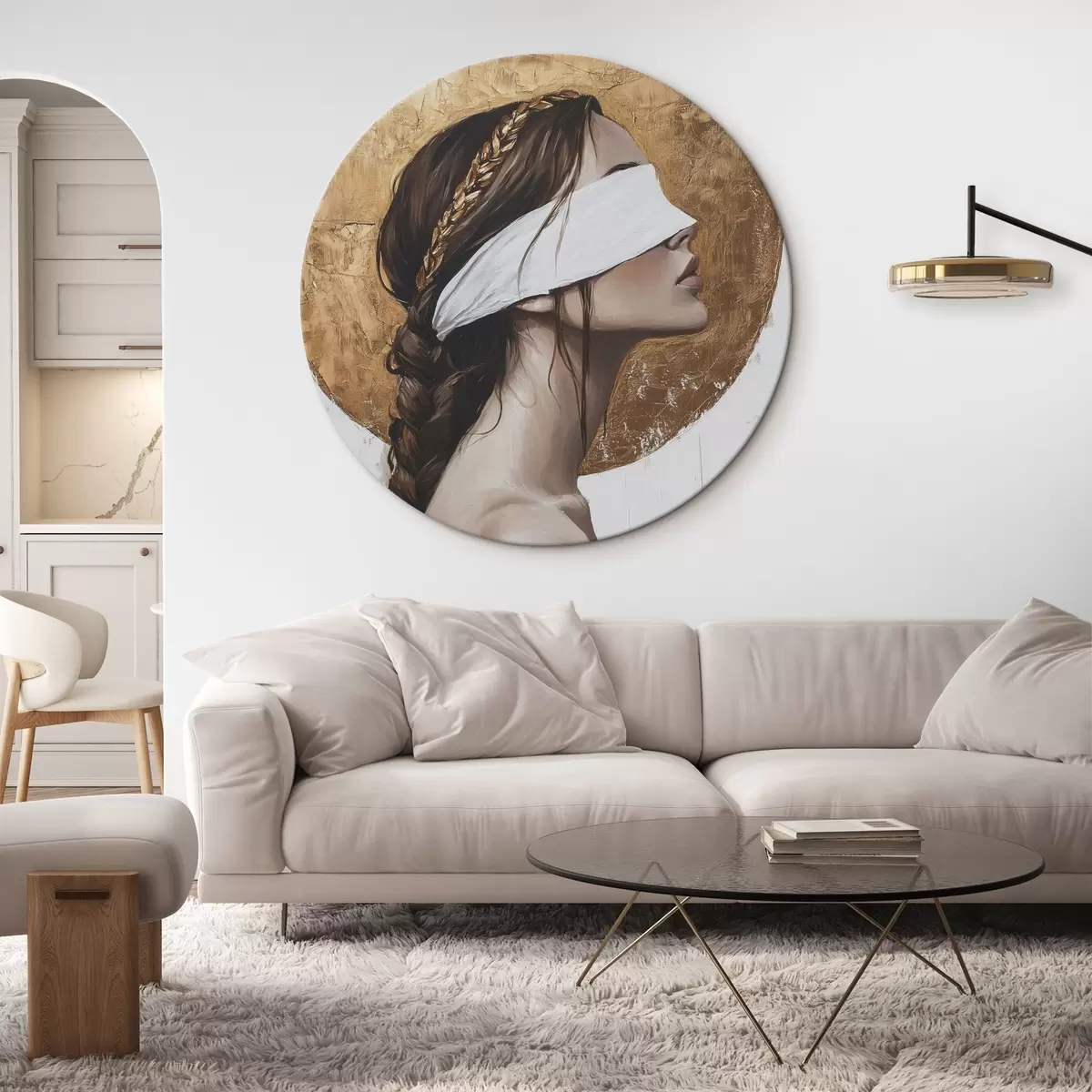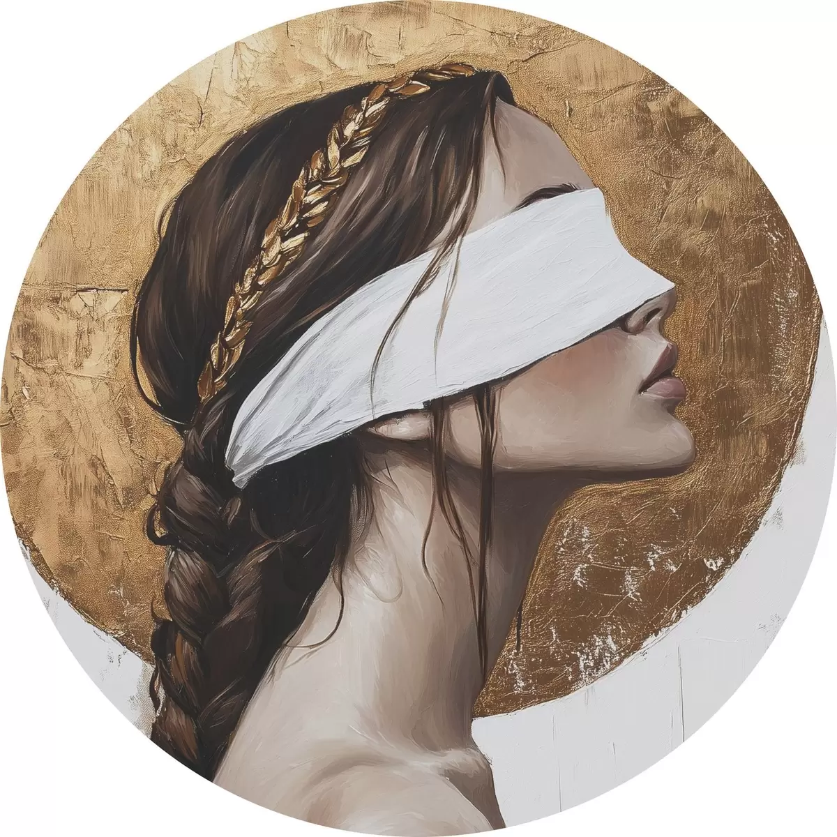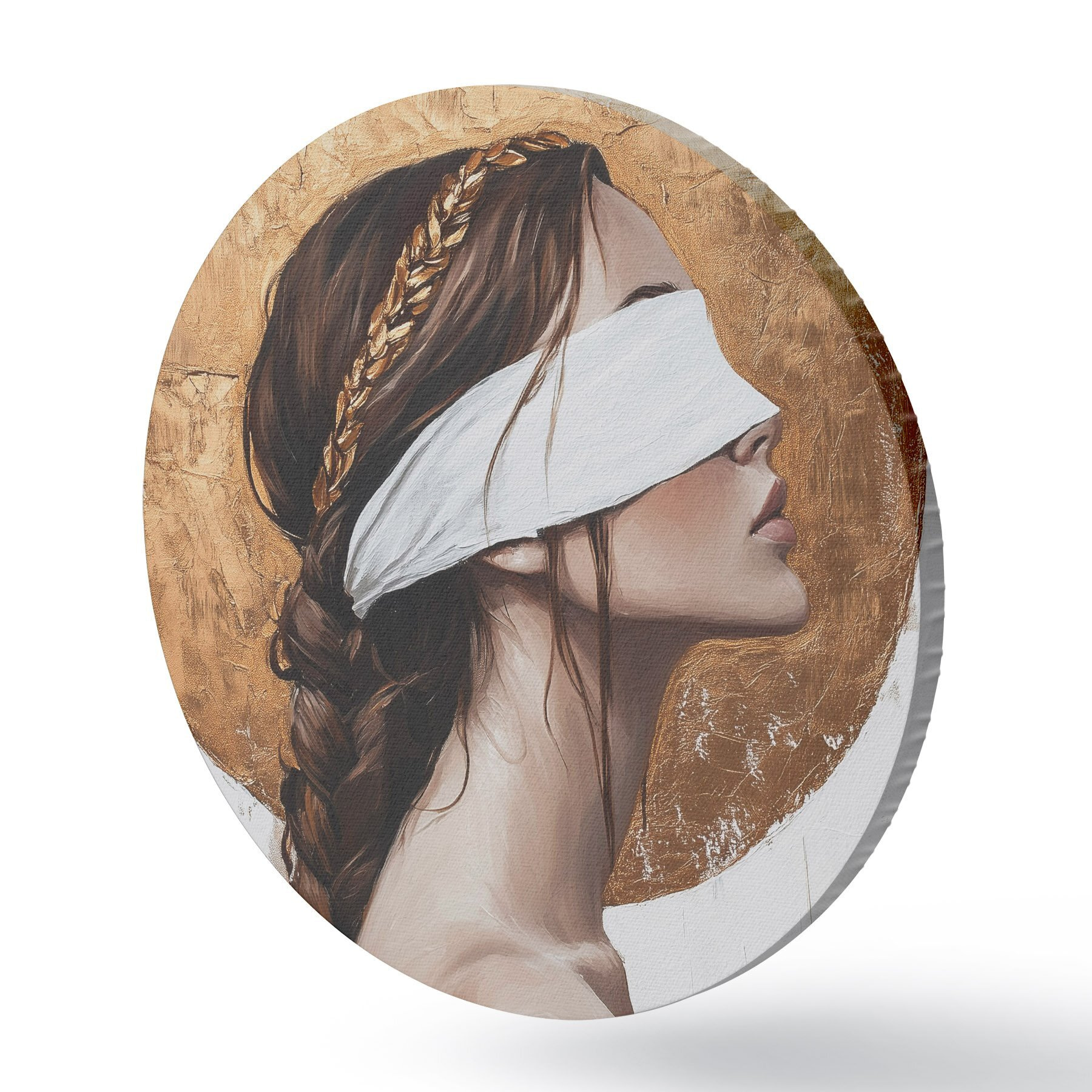 Cuadros redondos Mujer con venda en los ojos, Grecia, dibujo estilo acrílico r43502
