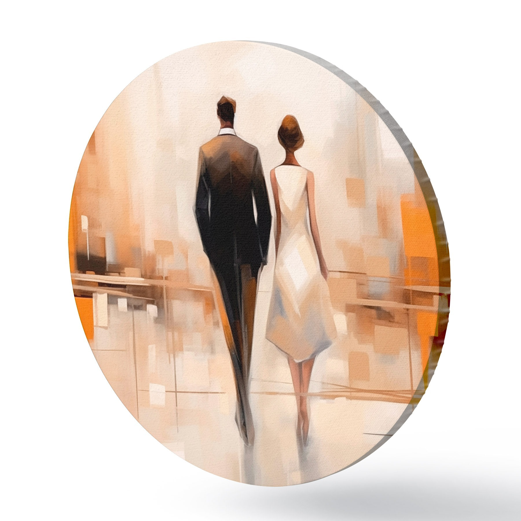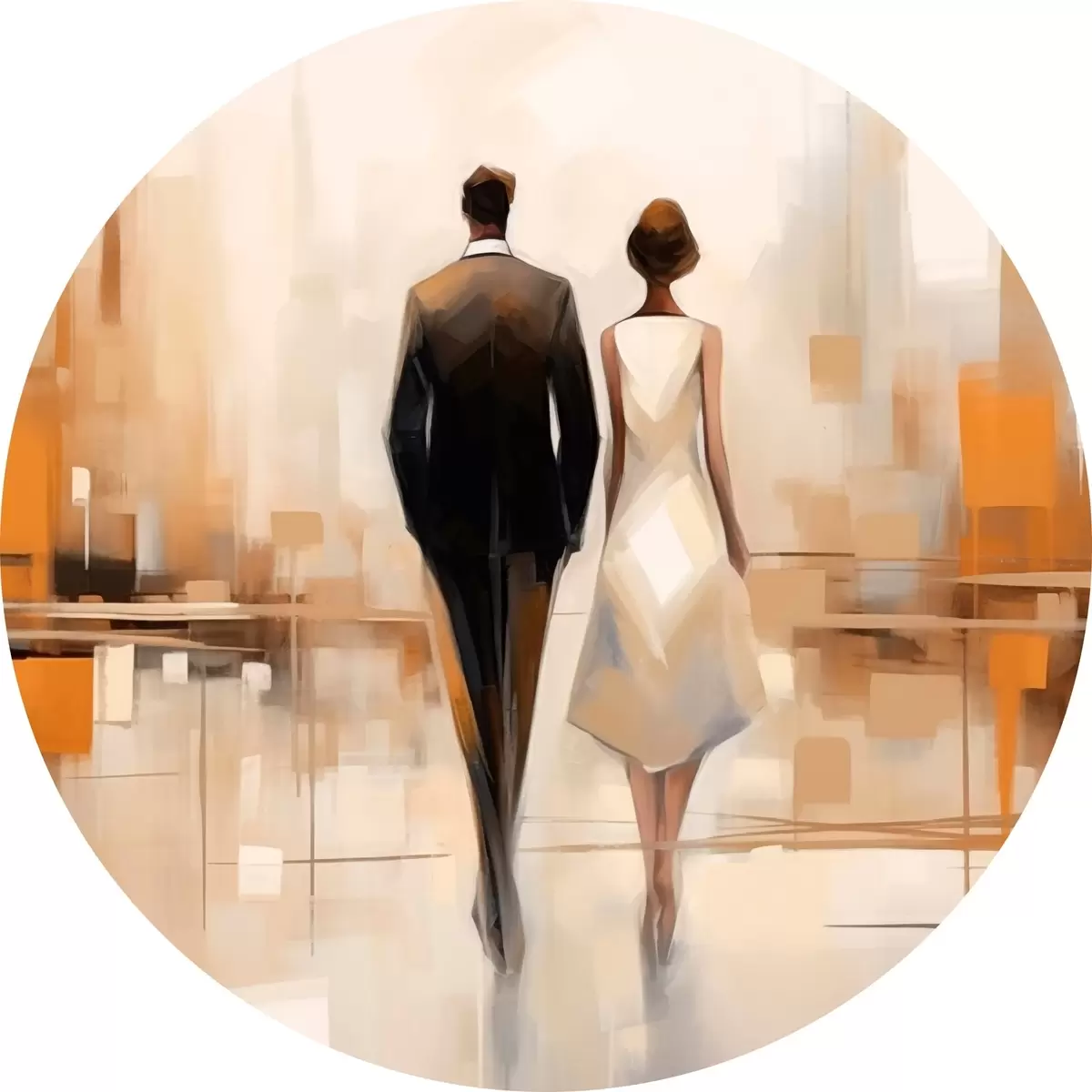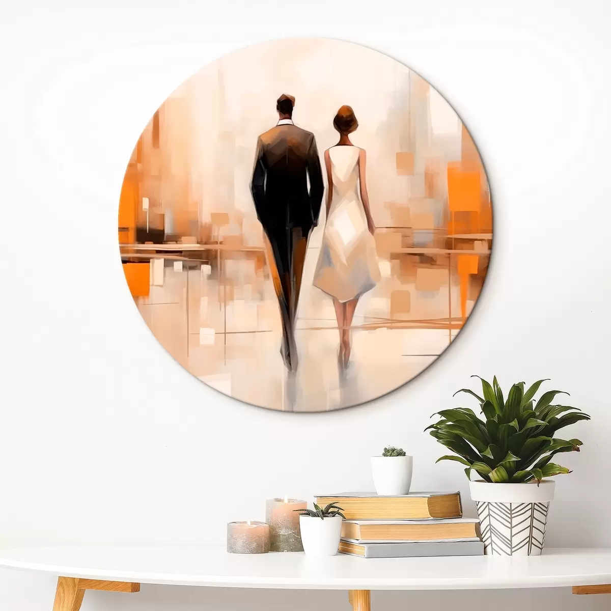 Cuadros redondos Abstracción con siluetas de ciudades y dos figuras r43516
