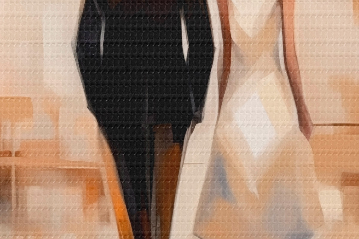 Foto Abstracción con siluetas de ciudades y dos figuras Nr r43516