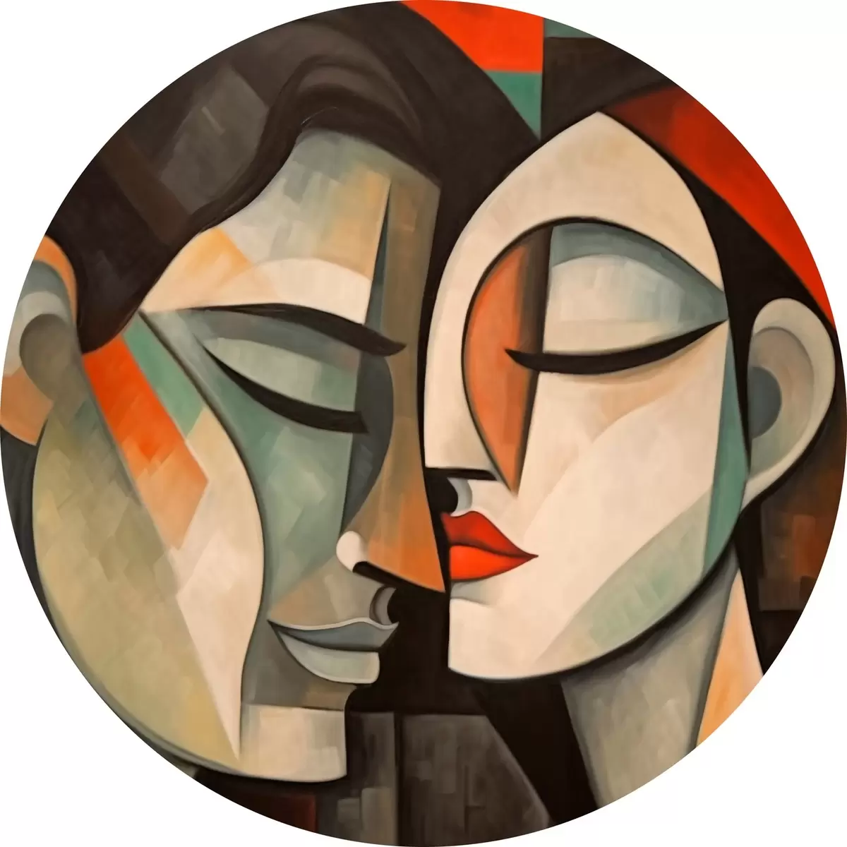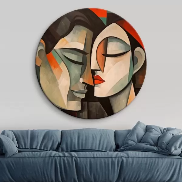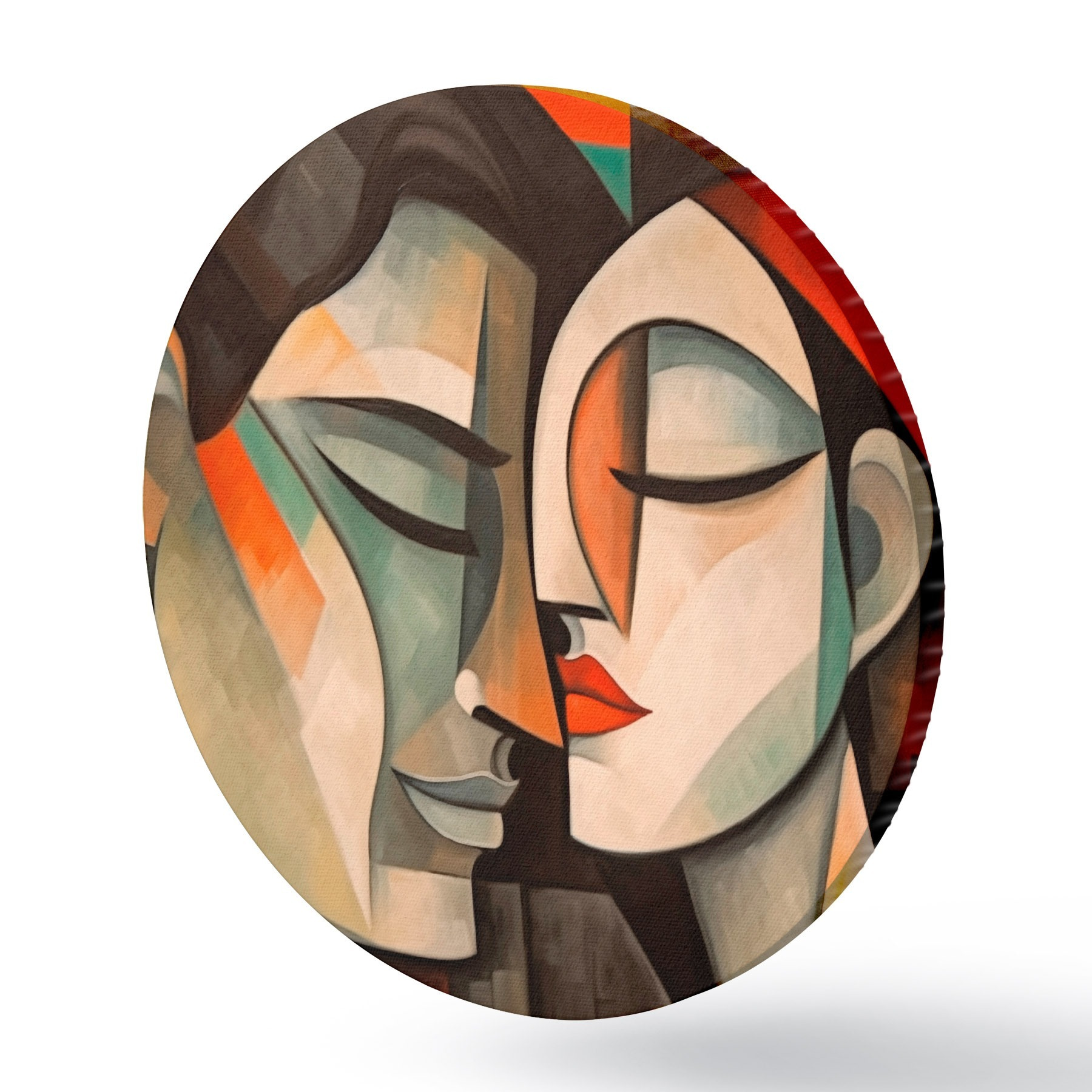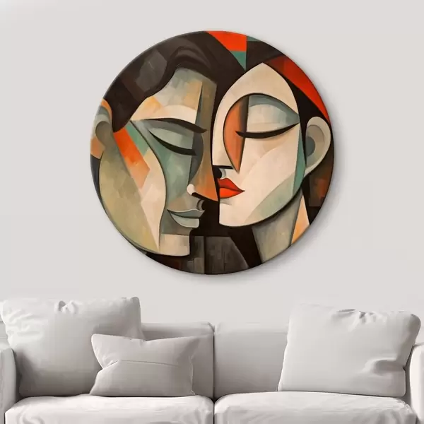 Cuadros redondos Retrato abstracto de una mujer en colores cálidos r43524