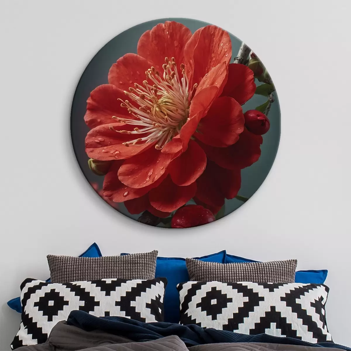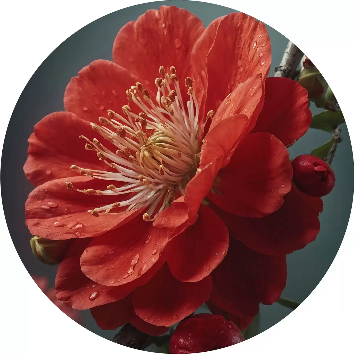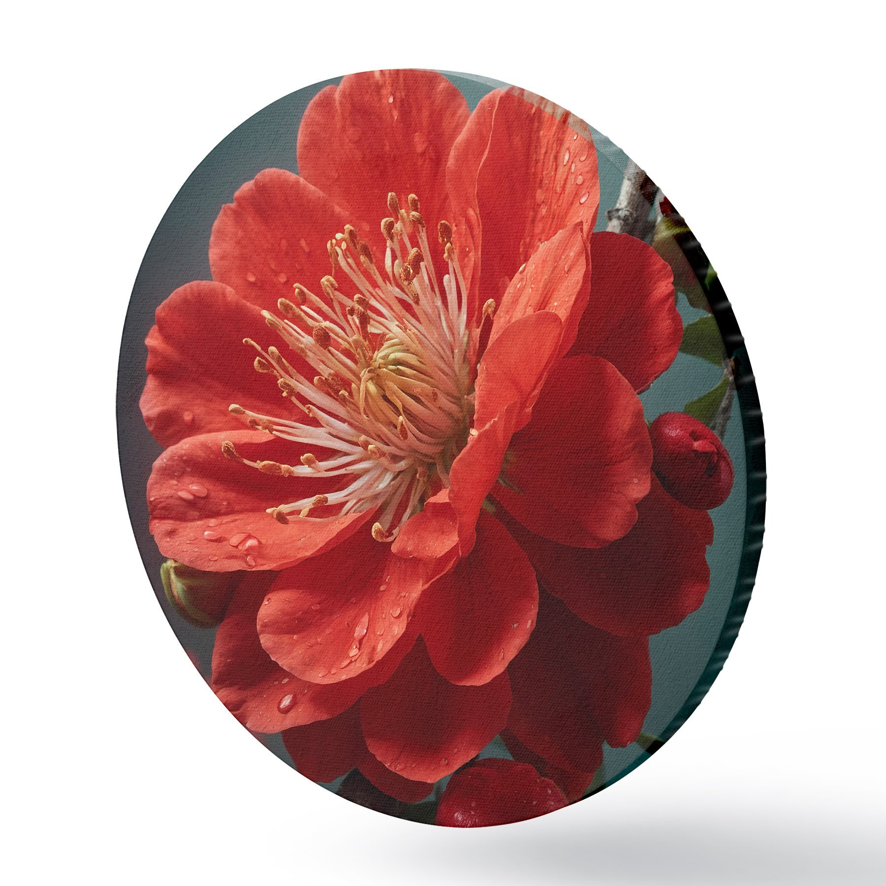 Cuadros redondos Flor roja en una rama r43876