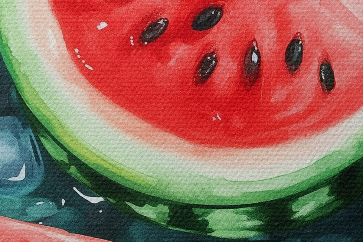 Foto Rodajas de sandía con cubitos de hielo y menta, estilo acuarela Nr r43880