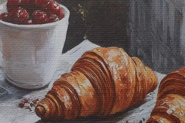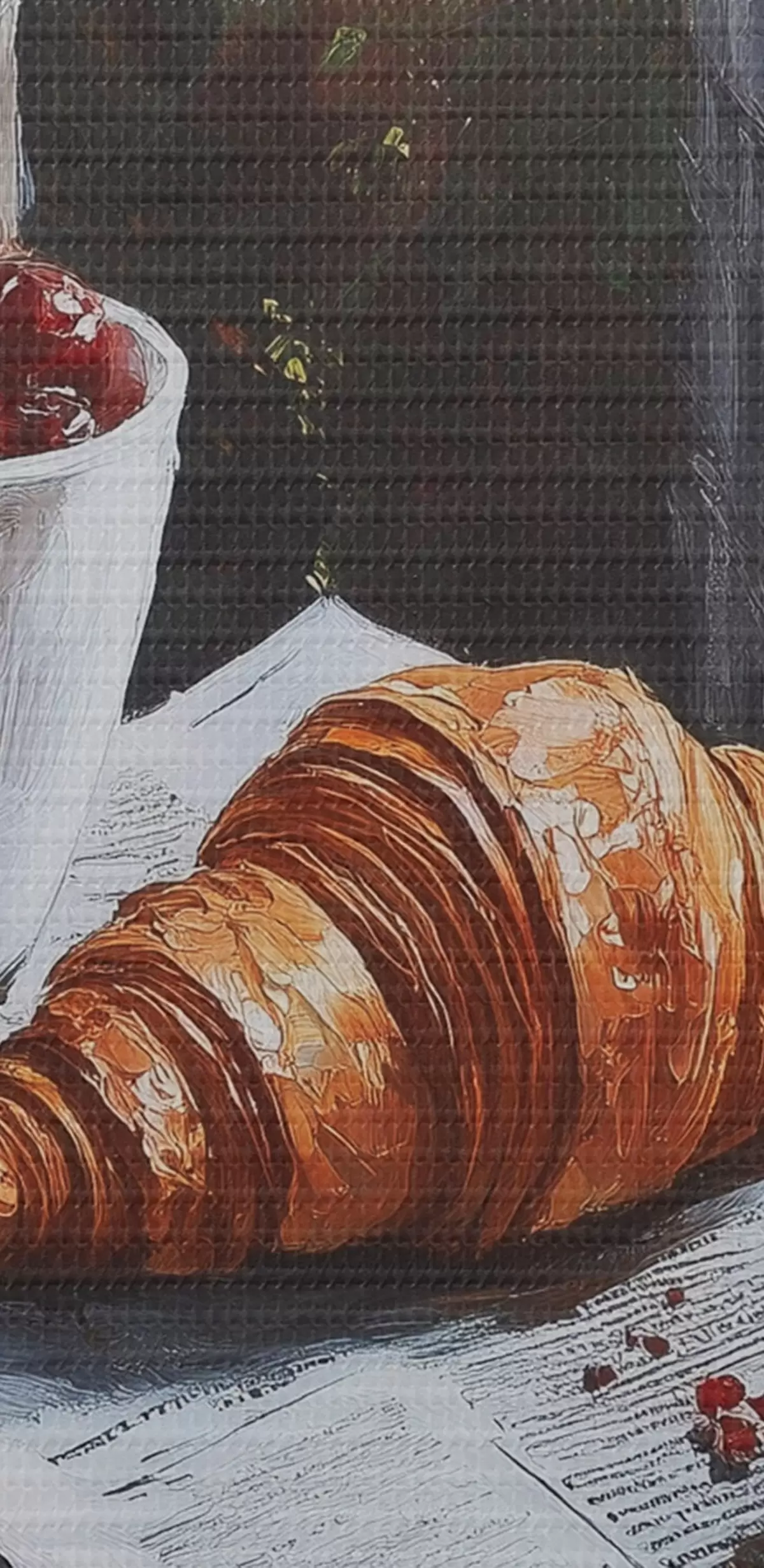 Foto París por la mañana, café con croissants, vista de la ciudad, dibujo al óleo Nr r43892