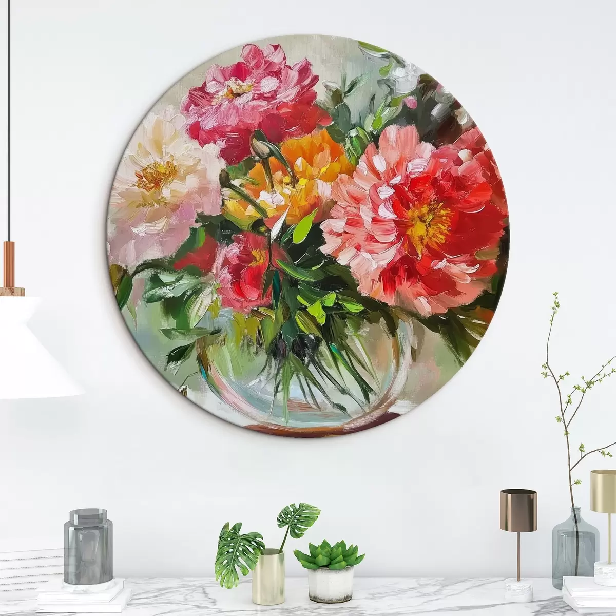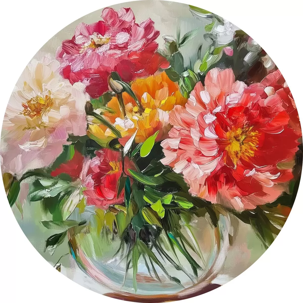 Cuadros redondos Flores grandes y brillantes en un jarrón r43907
