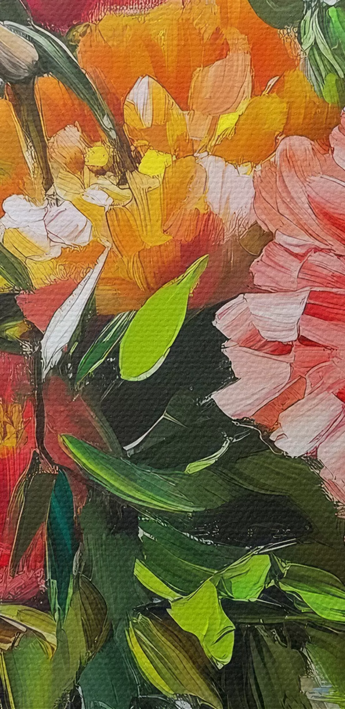 Hay tres tipos de material disponibles para pedidos: Lienzo Económico - material denso y duradero para impresión digital, idéntico al lienzo de pintor, superficie impermeable, reproducción realista de los detalles, material de grano medio. Lienzo Premium - la textura se asemeja a la de un lienzo de pintor (pequeños hilos entrelazados). Reproducción suave y detallada de la imagen sobre una superficie mate. Eco-Premium - tejido 100% algodón de alta calidad. Gracias a las fibras naturales de algodón, el material es duradero y resistente al desgaste. Excelente reproducción del color y el detalle.