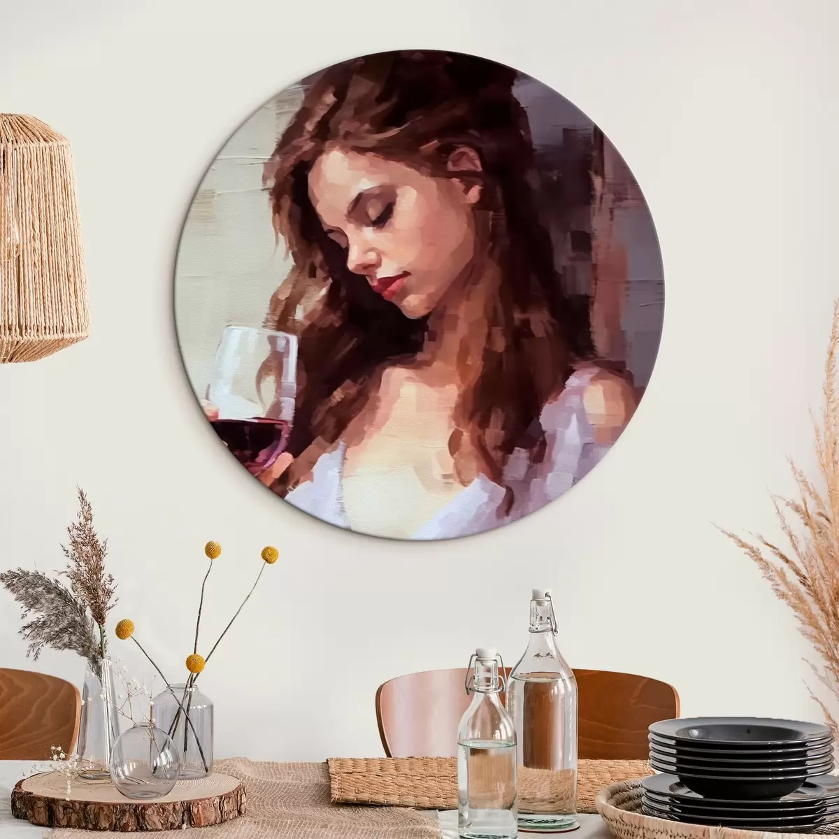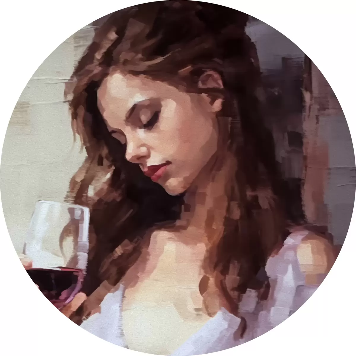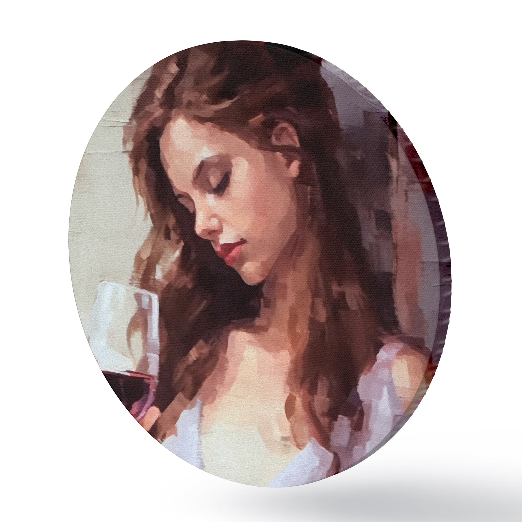 Cuadros redondos Chica con un vaso de vino r43940