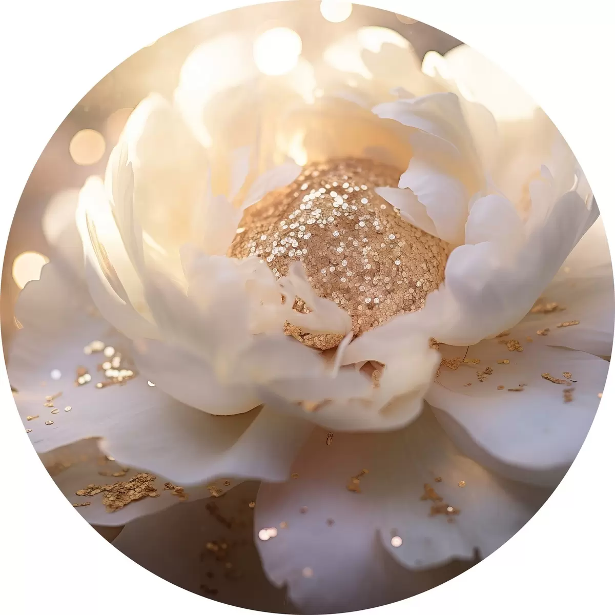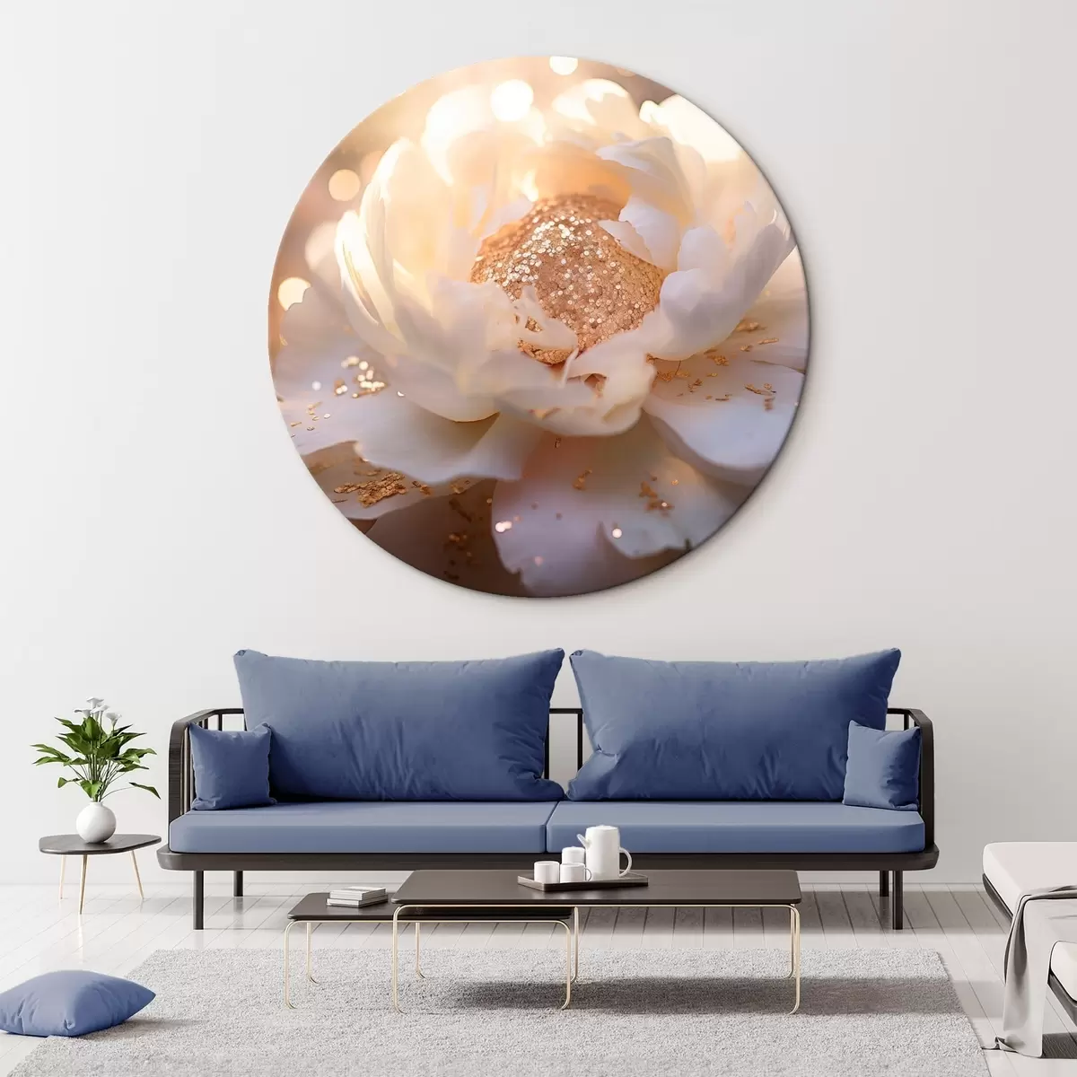 Cuadros redondos Flor blanca con monedas en el centro r43948